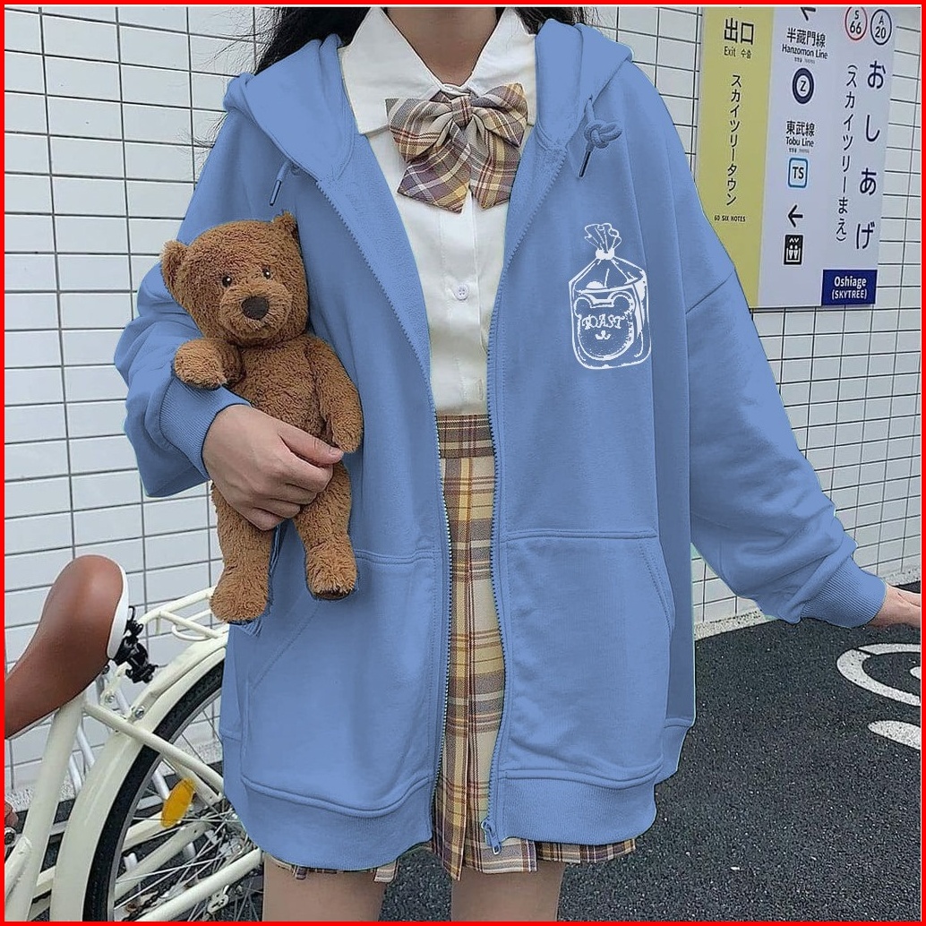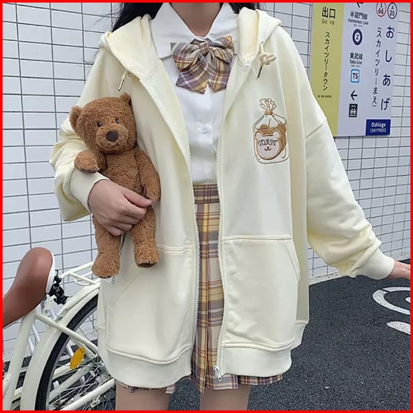 Vallina - Zippy Toast Hoodie Jacket Oversized Outerwear Remaja Wanita Korean Style Premium