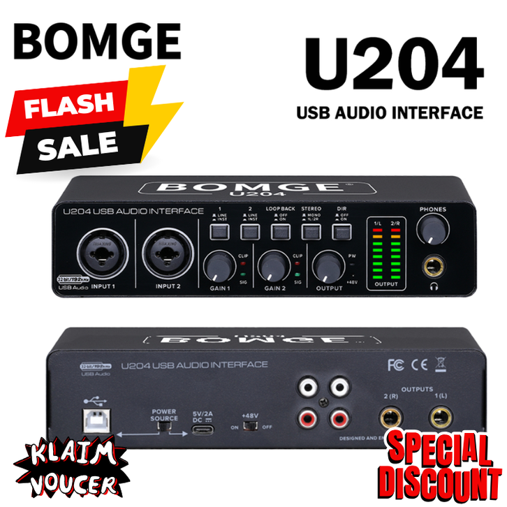 BOMGE U204 USB Audio Interface Performance Mixer & Recording Interface Mic Preamplifier XLR/TSR/TS Ports, Compatible