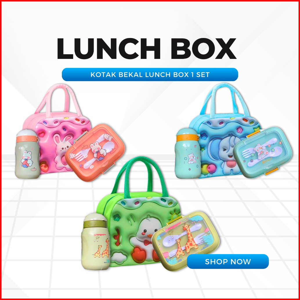 Lunch Box Set Tas Karakter Botol Minum Anti Tumpah Kotak Tempat Makan Bekal Anak Sekolah Tk