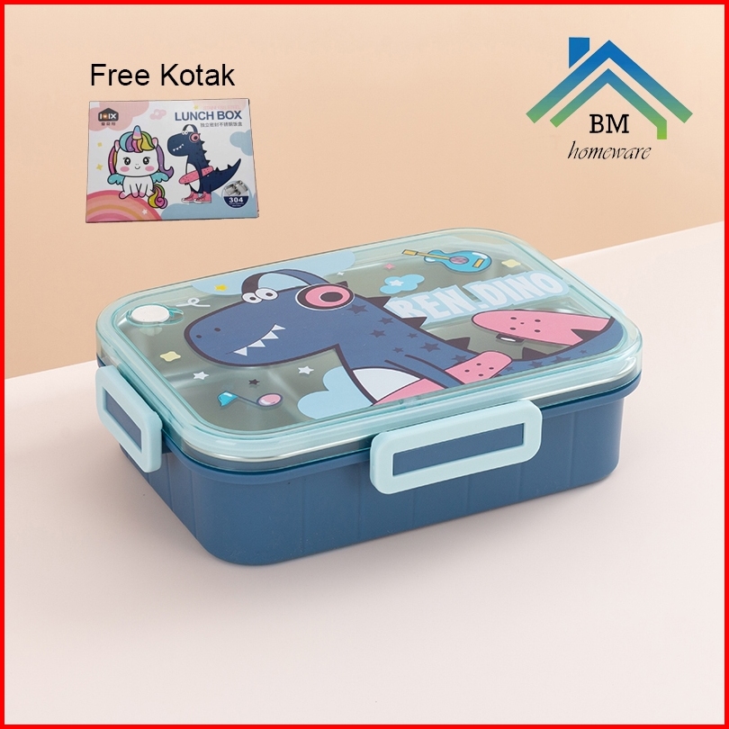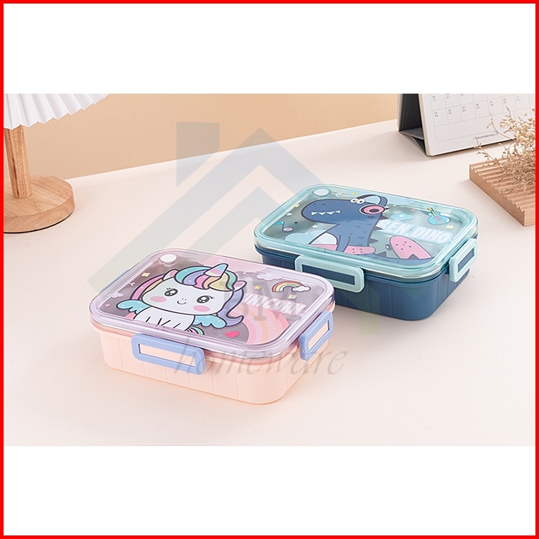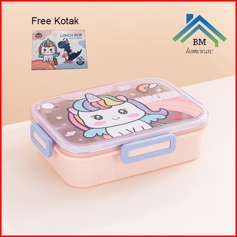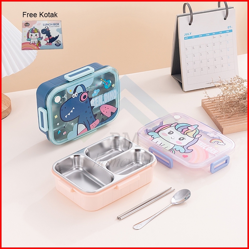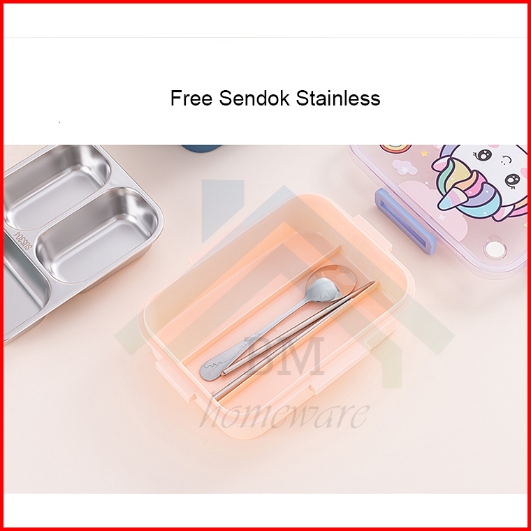 Kotak Makan Stainless Steel Karakter Lucu Lunch Box Set Unicorn Dino Bekal Anak