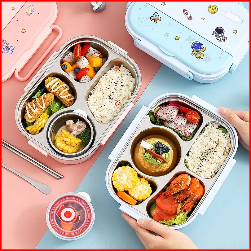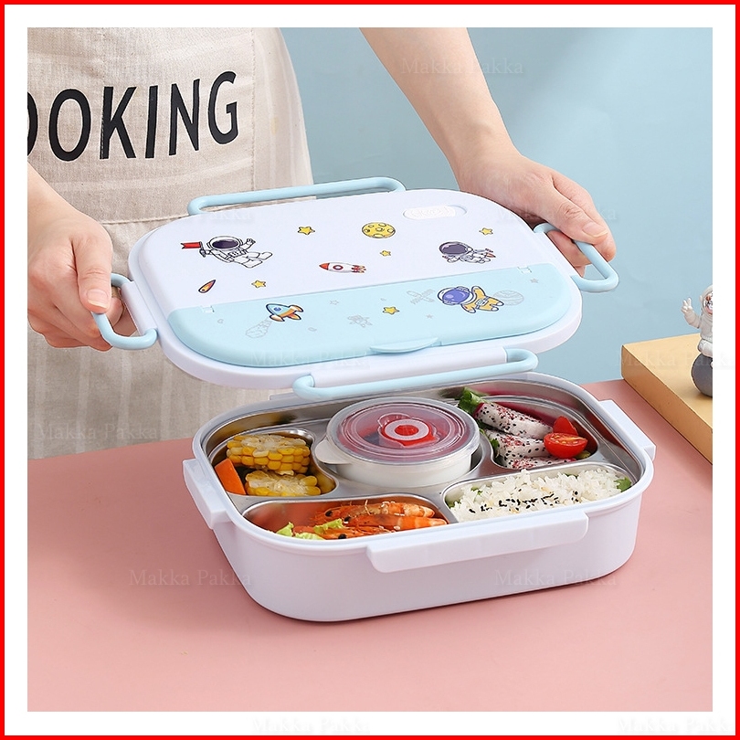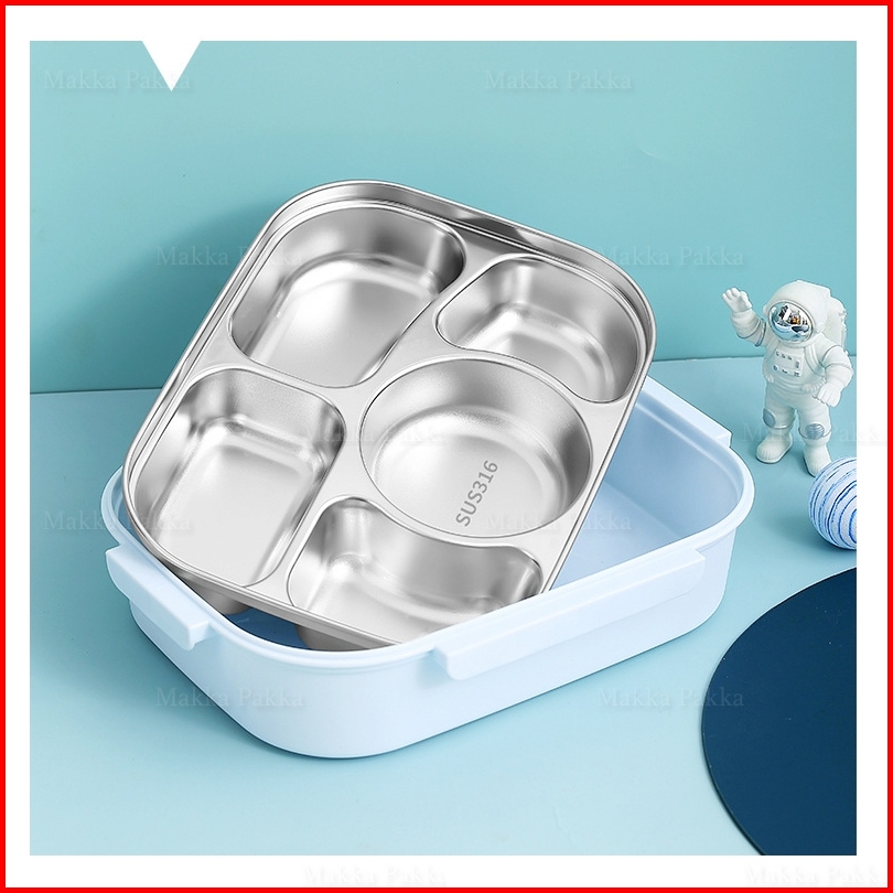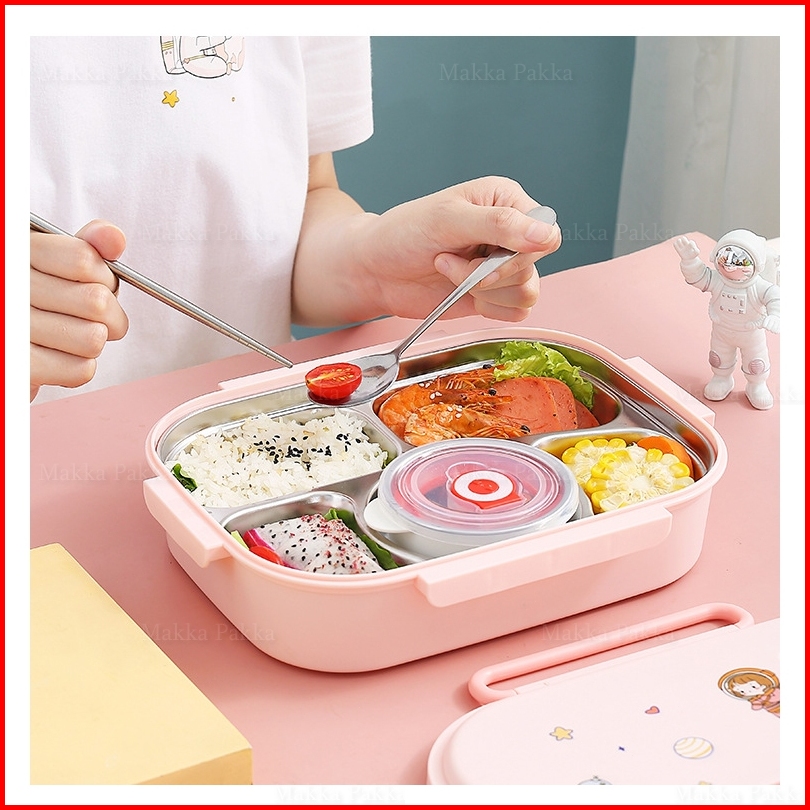 316 Set Alat Makan Anak Stainless Kotak Makan Stainless Anak Lunch Box Anti Tumpah Anak Kotak Bekal Makan Sekat Jumbo Be