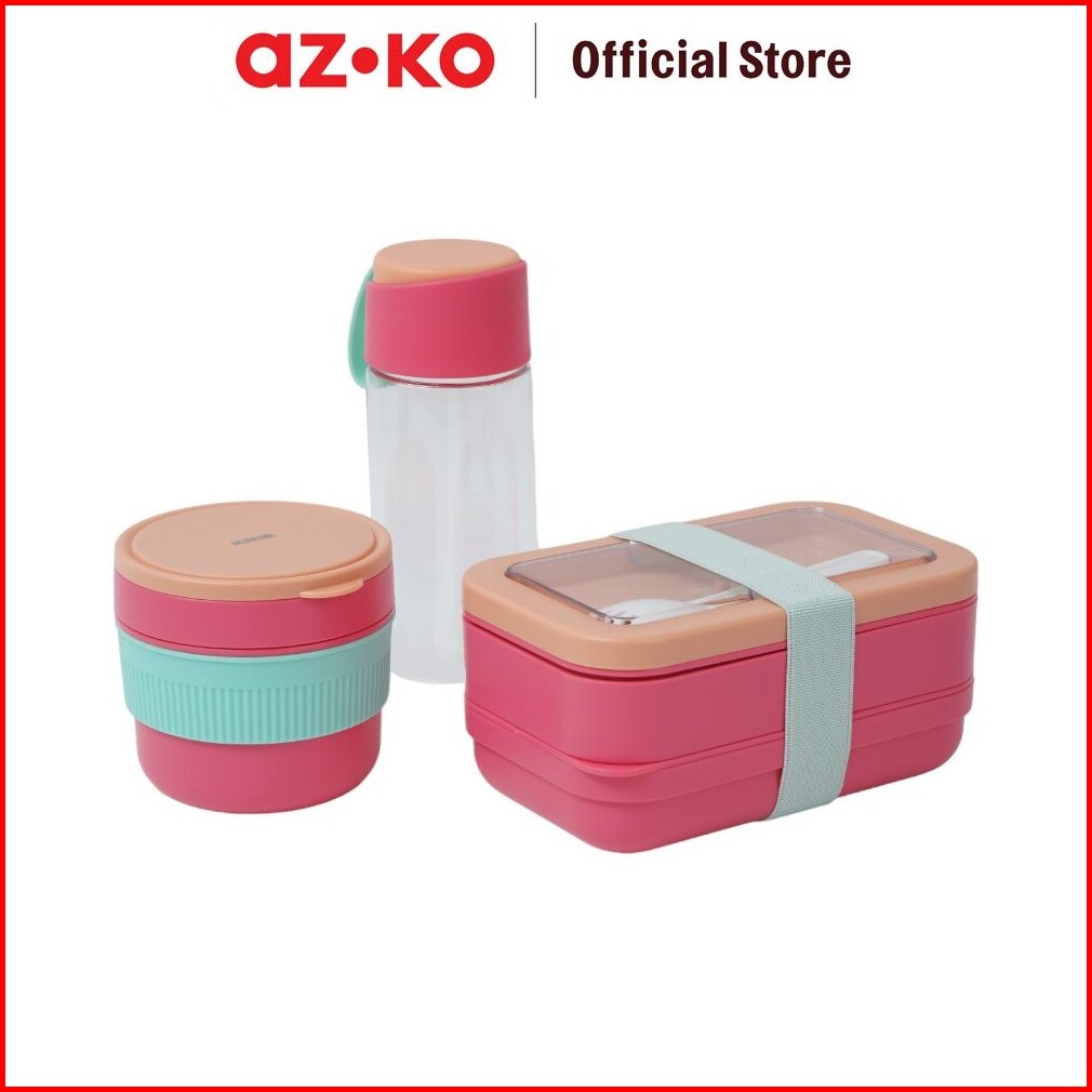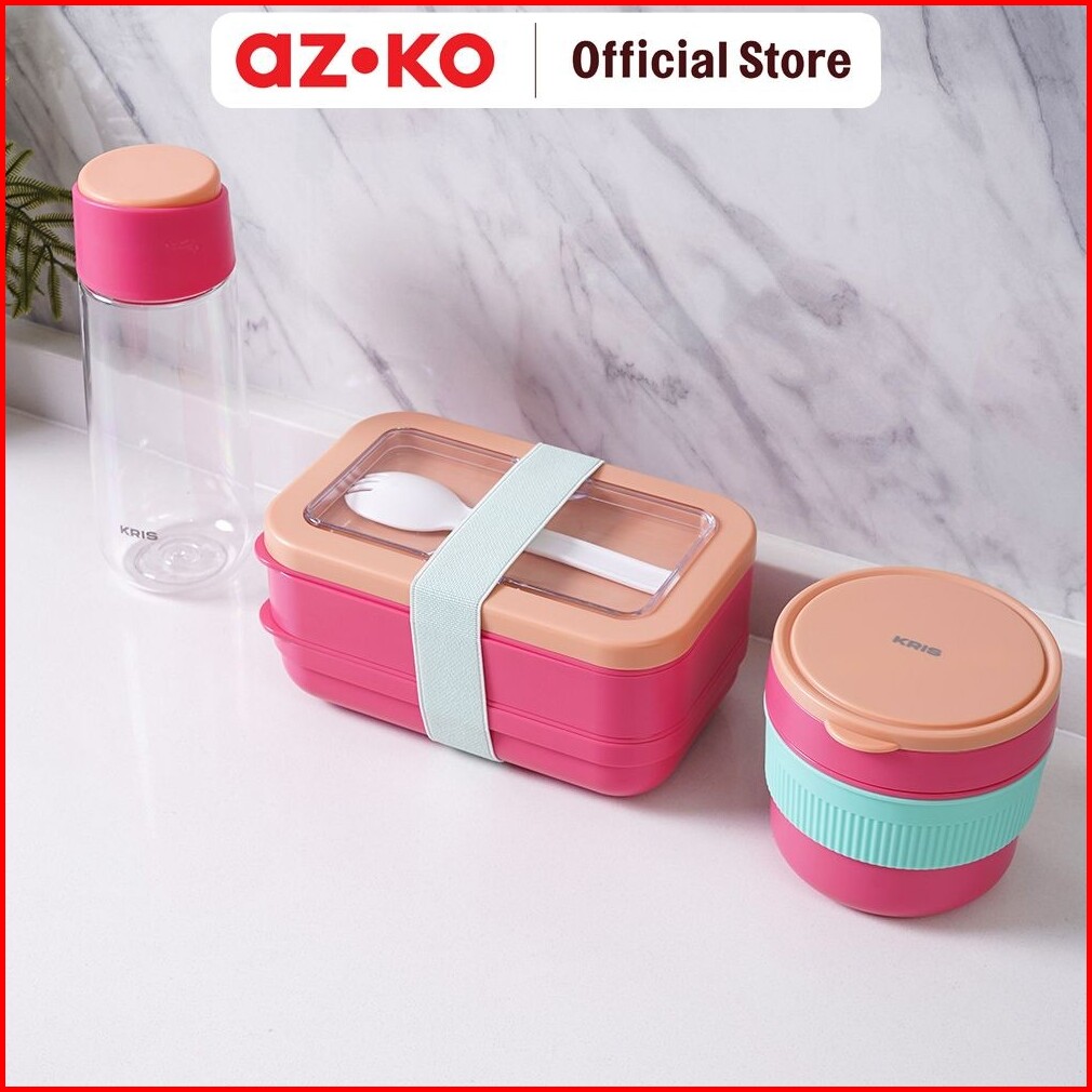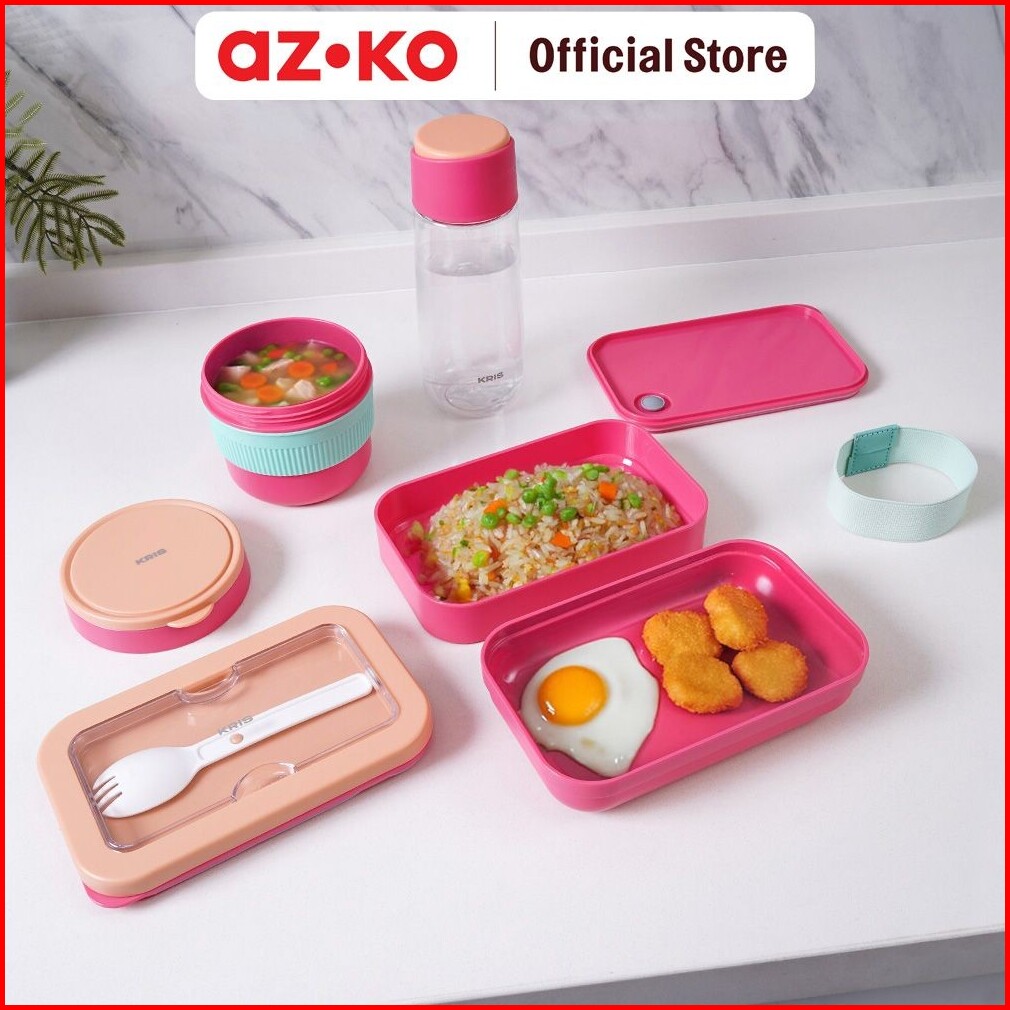 Azko Kris Baggie Set Kotak Makan - Pink Kids Bento Lunch Kit Set Kotak Makan Dan Botol Minum Bpa Free Peralatan Makan Fo