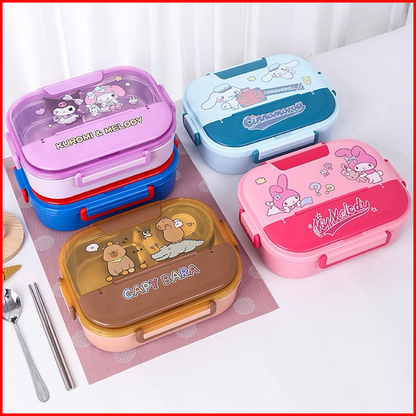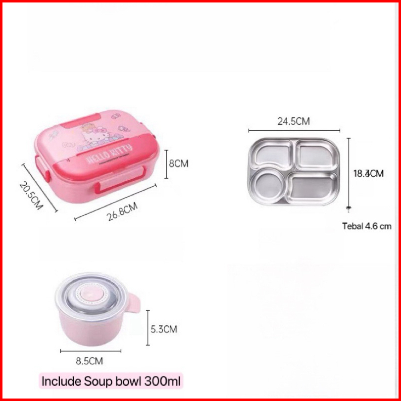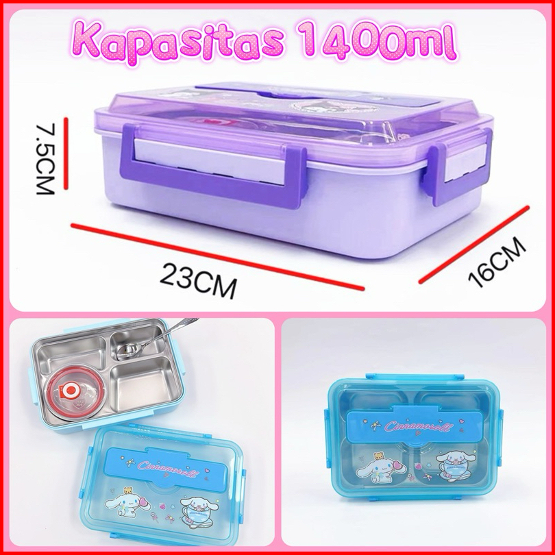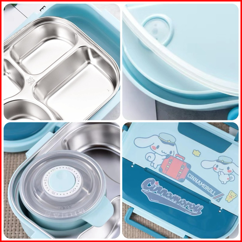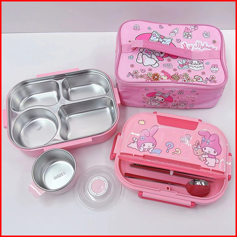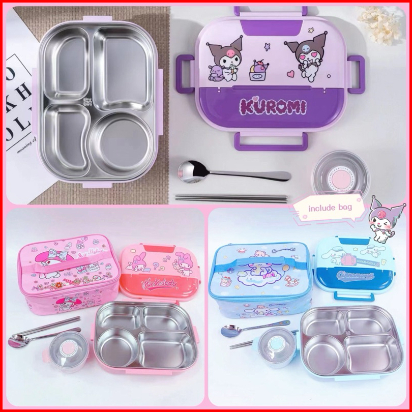Kotak Makan Stainlees Steel Include Tas Kuromi Melody Cinnamoroll Lunch Box Sekat 4 Soup Bowl