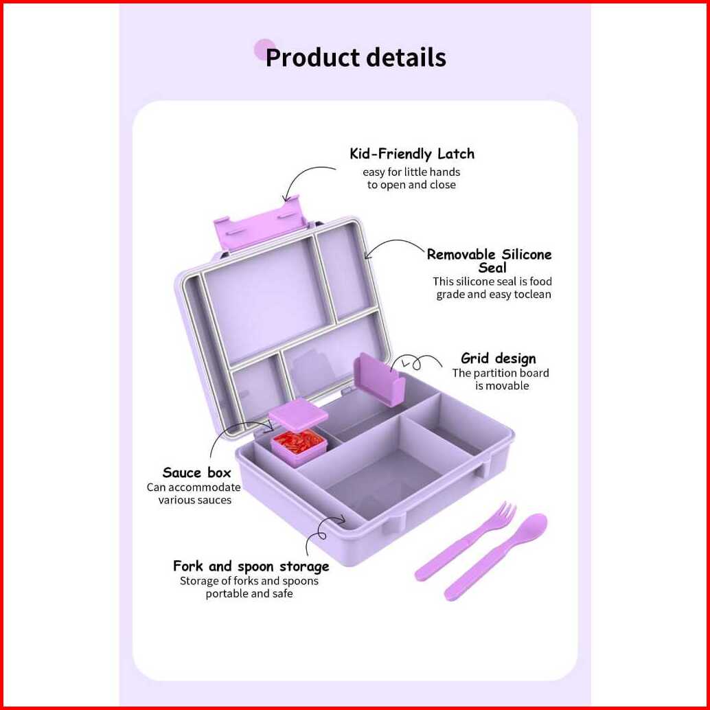 Anti Tumpah Dan Anti Nyampur Kotak Makan Lunch Box Anak 5 Sekat Dengan Kotak Saus Dan Sendok Garpu