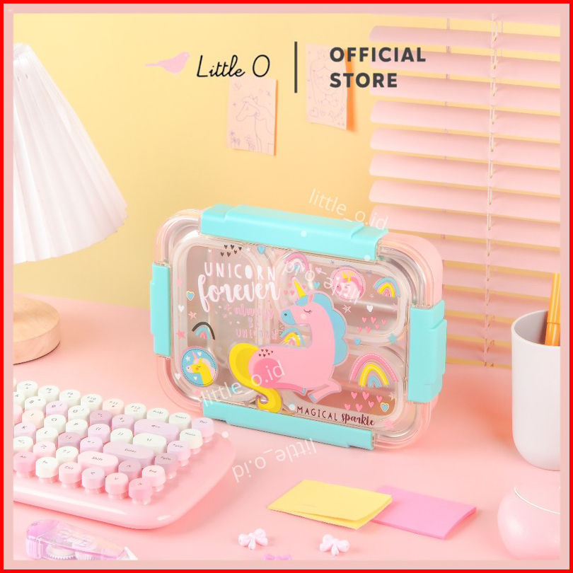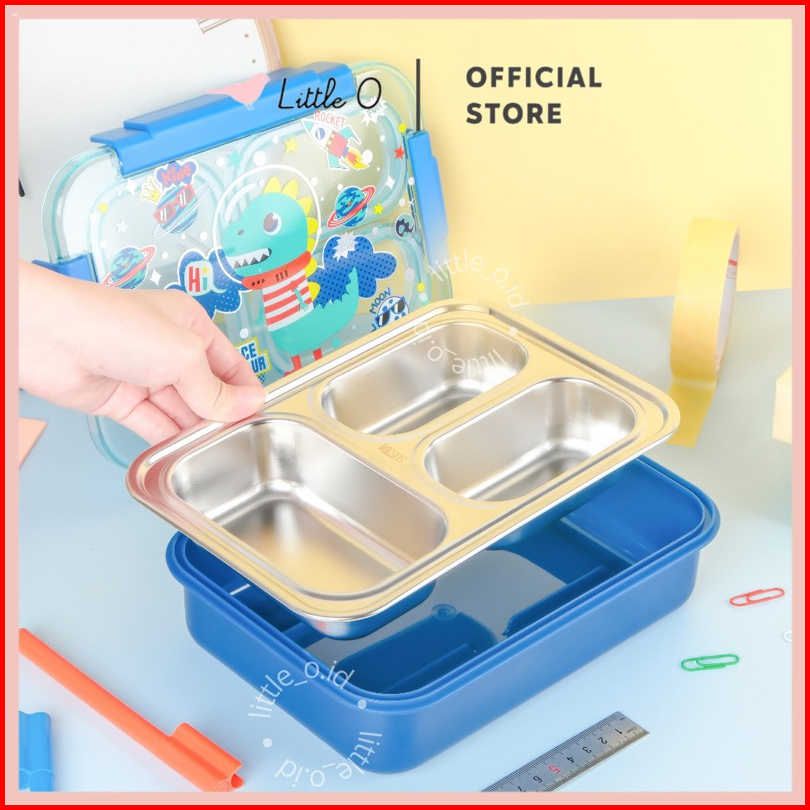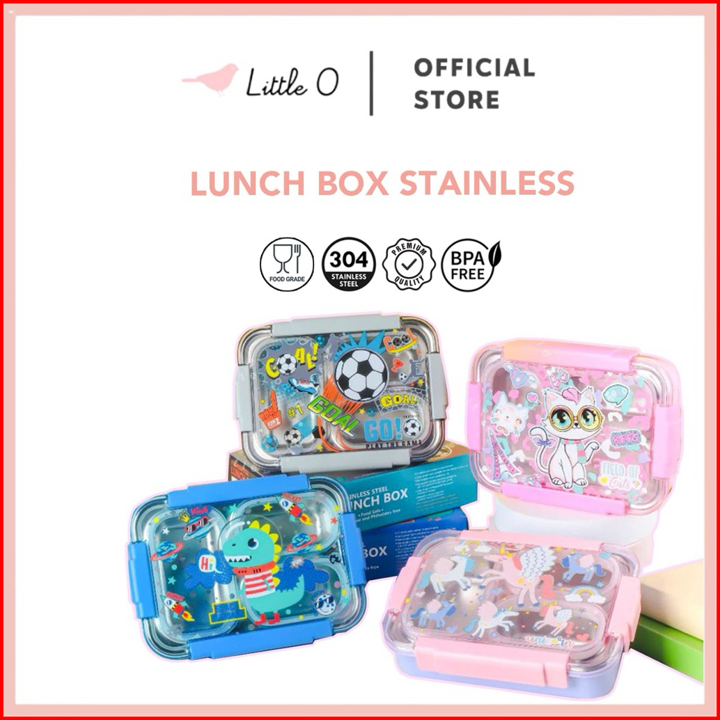 Little O Premium Lunch Box Stainless Bpa Free Lunch Box Tempat Kotak Makan Bekal Anak Kotak Bento 3 Sekat Sus 304 Anti T