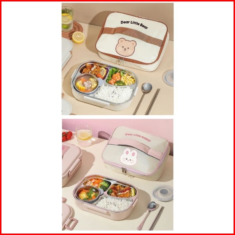 Ready Lunch Box Stainles 304 4 5 Sekat Dapat Tas Kotak Makan Anak Kotak Makan Stainles Kotak Makan Sekat Lunch Box Bear