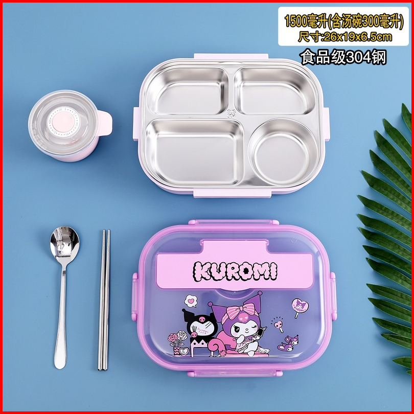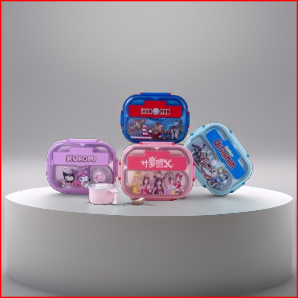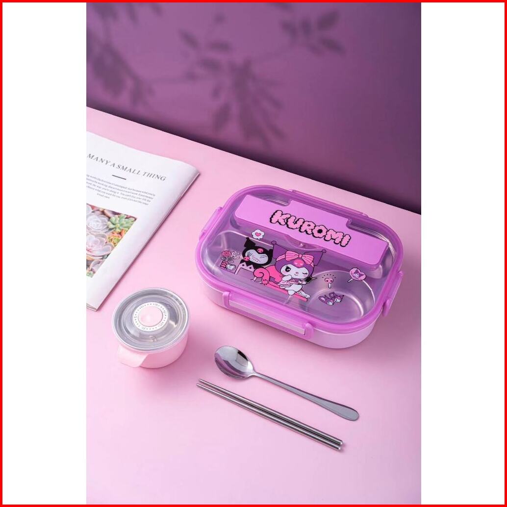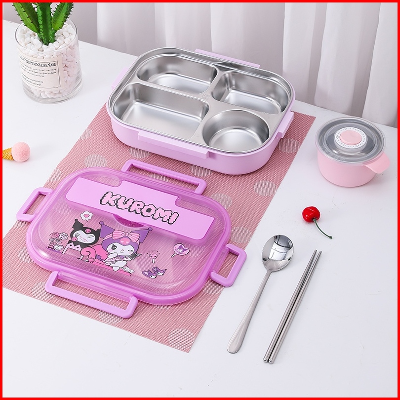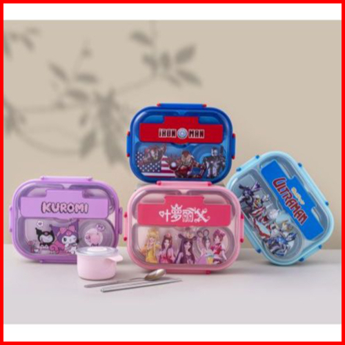 Lunch Box Stainless Kotak Makan Kotak Bekal Anak Karakter Kuromi Iron Man Ultraman 4 Sekat Tempat Soup