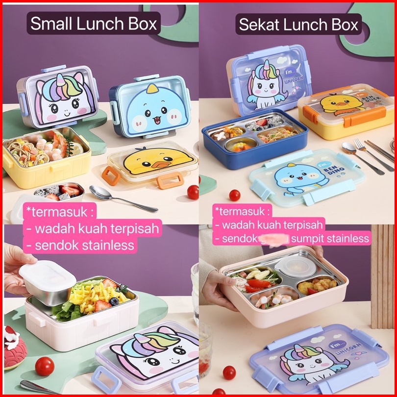 Kotak Makan Anak Stainless Unicorn Dino Duck Lunch Box Stainless Anak