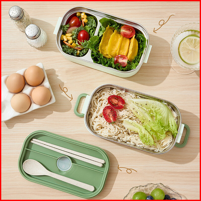 Kotak Makan Siang Portabel 304 Baja Tahan Karat Siang Terisolasi Kapasitas Besar Microwave Untuk