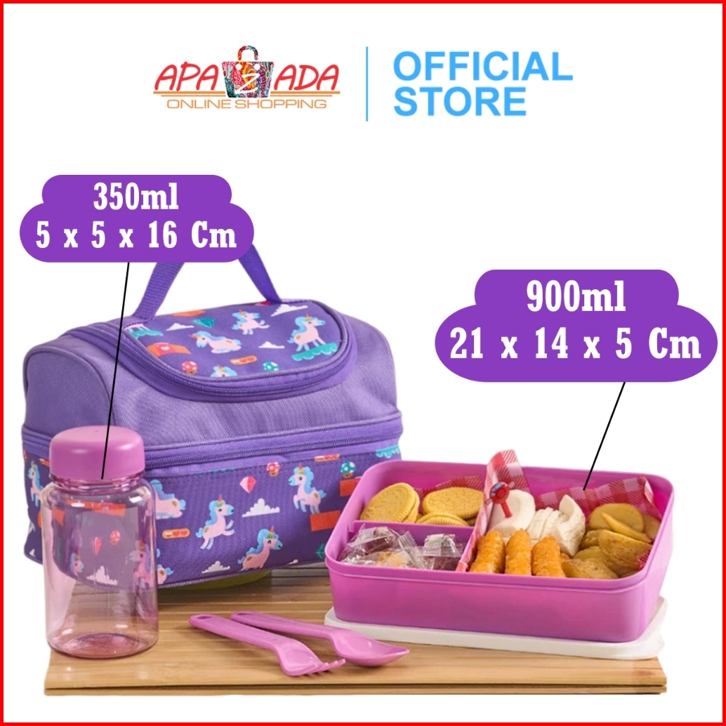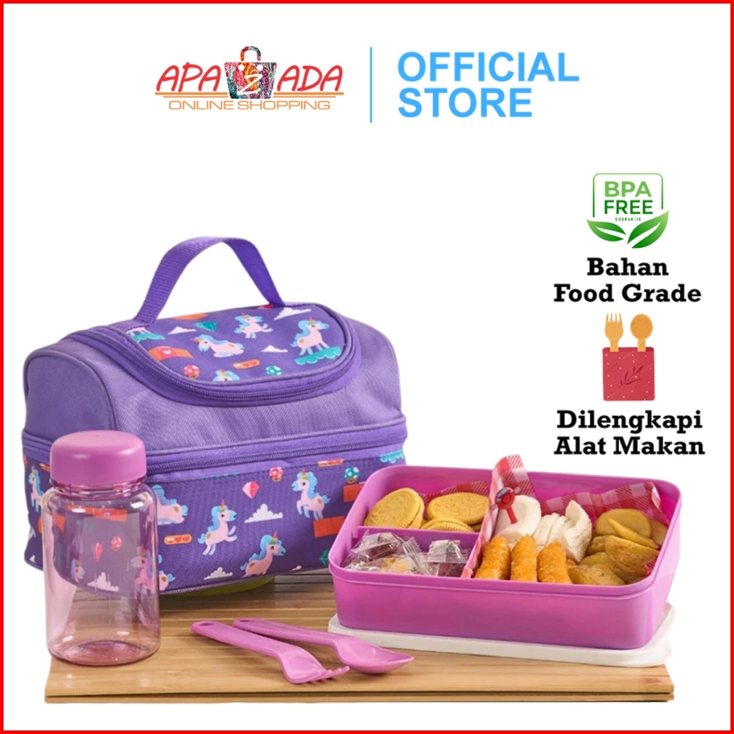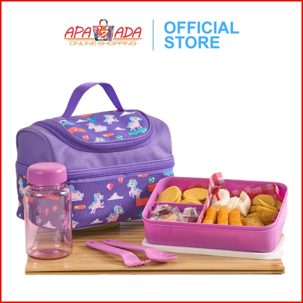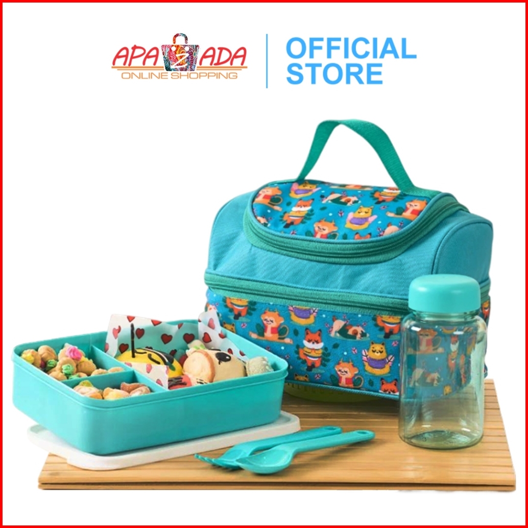 Apazada - Lunch Box New Smiley Set Of 4 Pcs Tas Dengan Tempat Bekal Makan Lunch Bag Kotak Makan