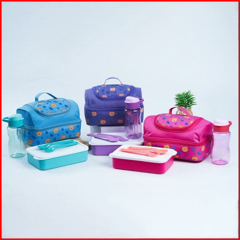 Woomii Tas Bekel Lunch Box Smiley Kotak Makan Botol Free Sendok Garpu Tempat Makan Anak Anak Bekel Makan
