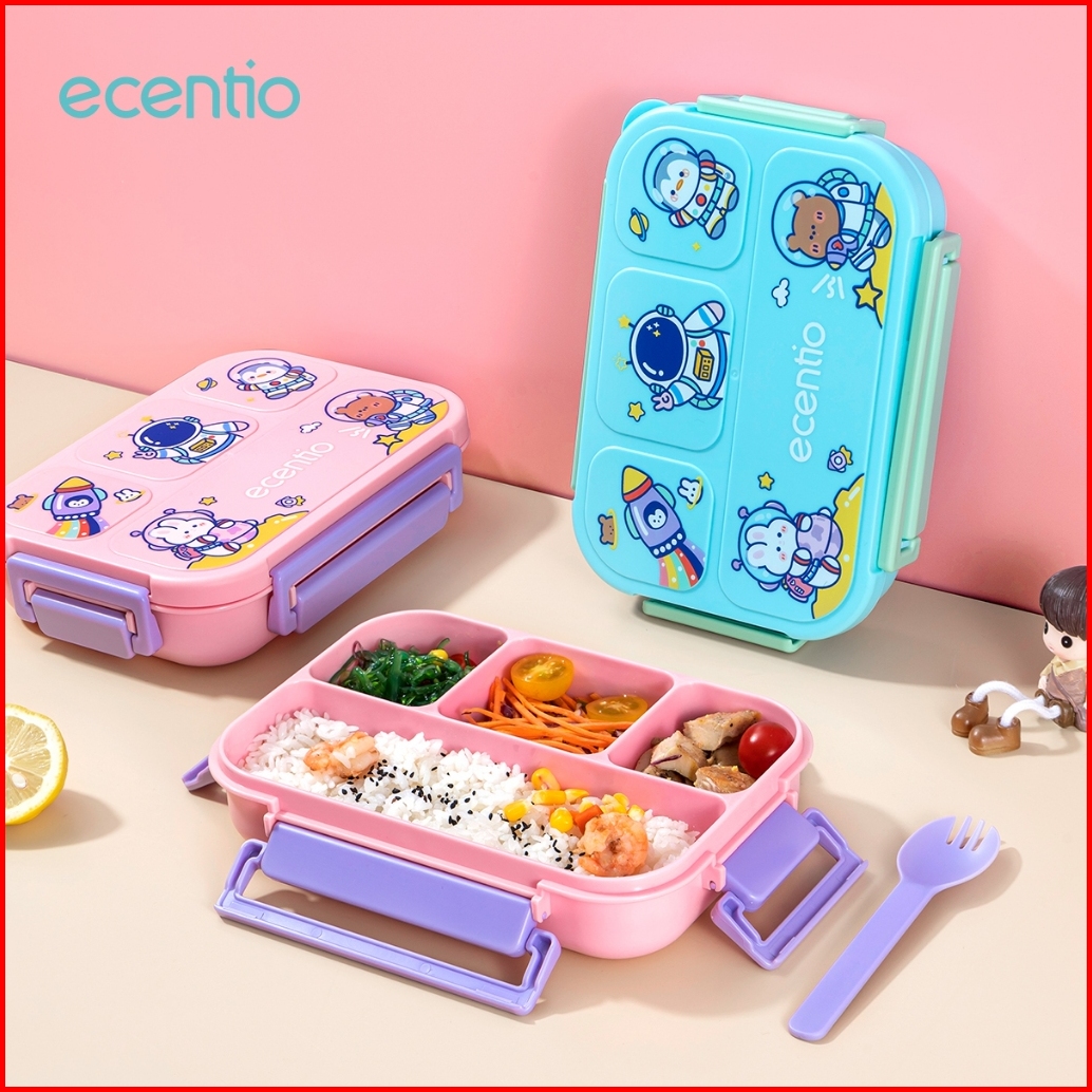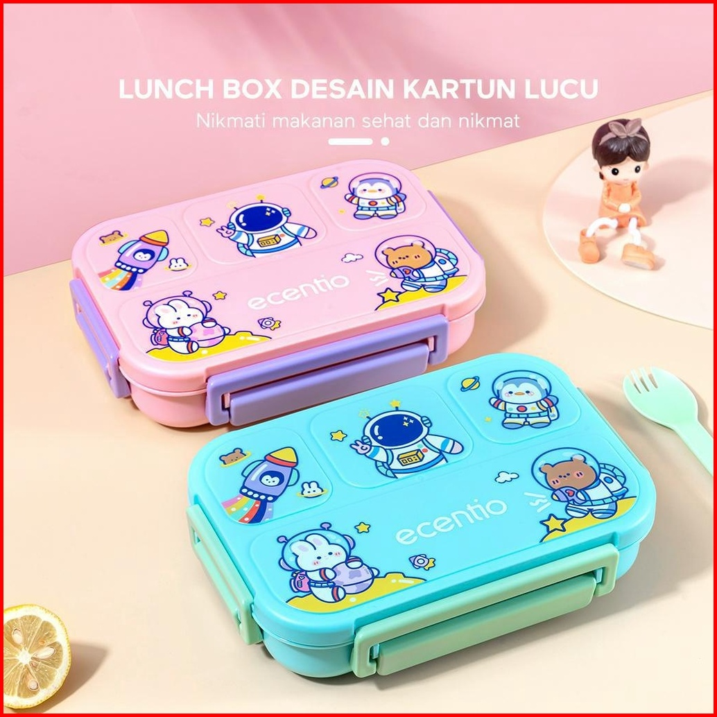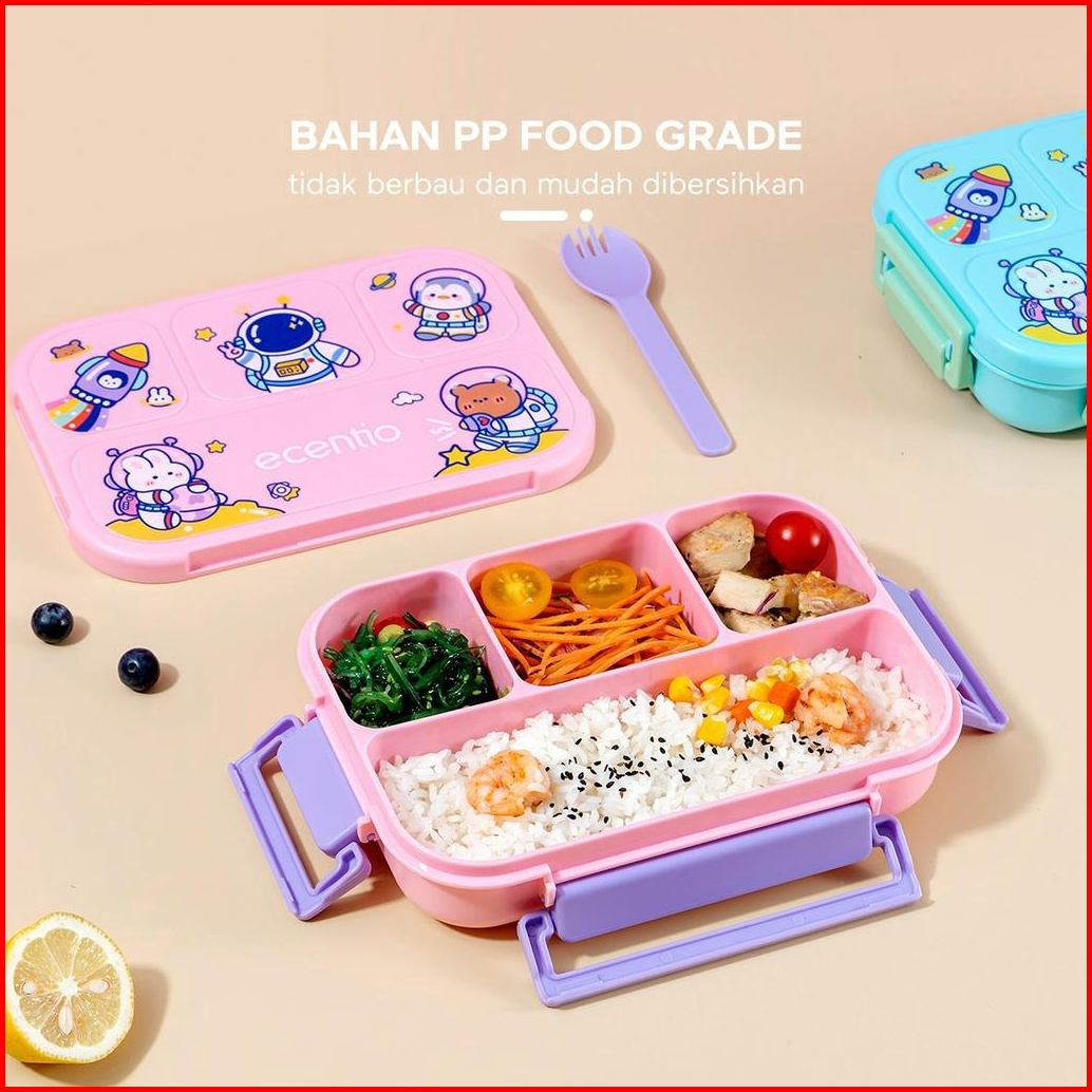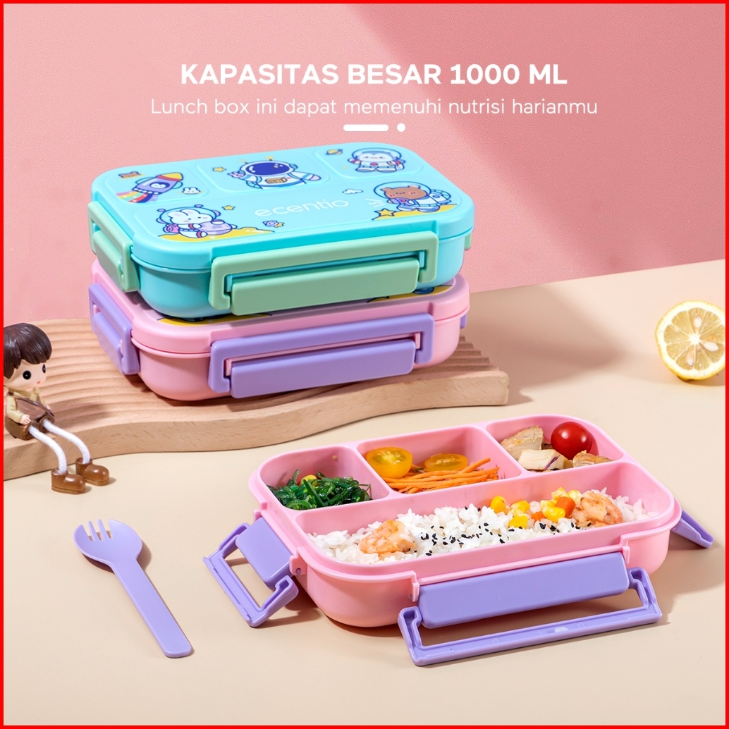 Ecentio Kotak Makan 4 Grid 1000ml Kids Lunch Box Tempat Rantang Makan Bayi Sendok Wadah Bekal Set Anti Tumpah Sup Garpu