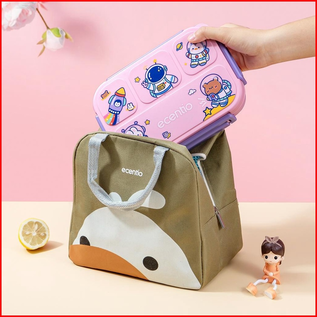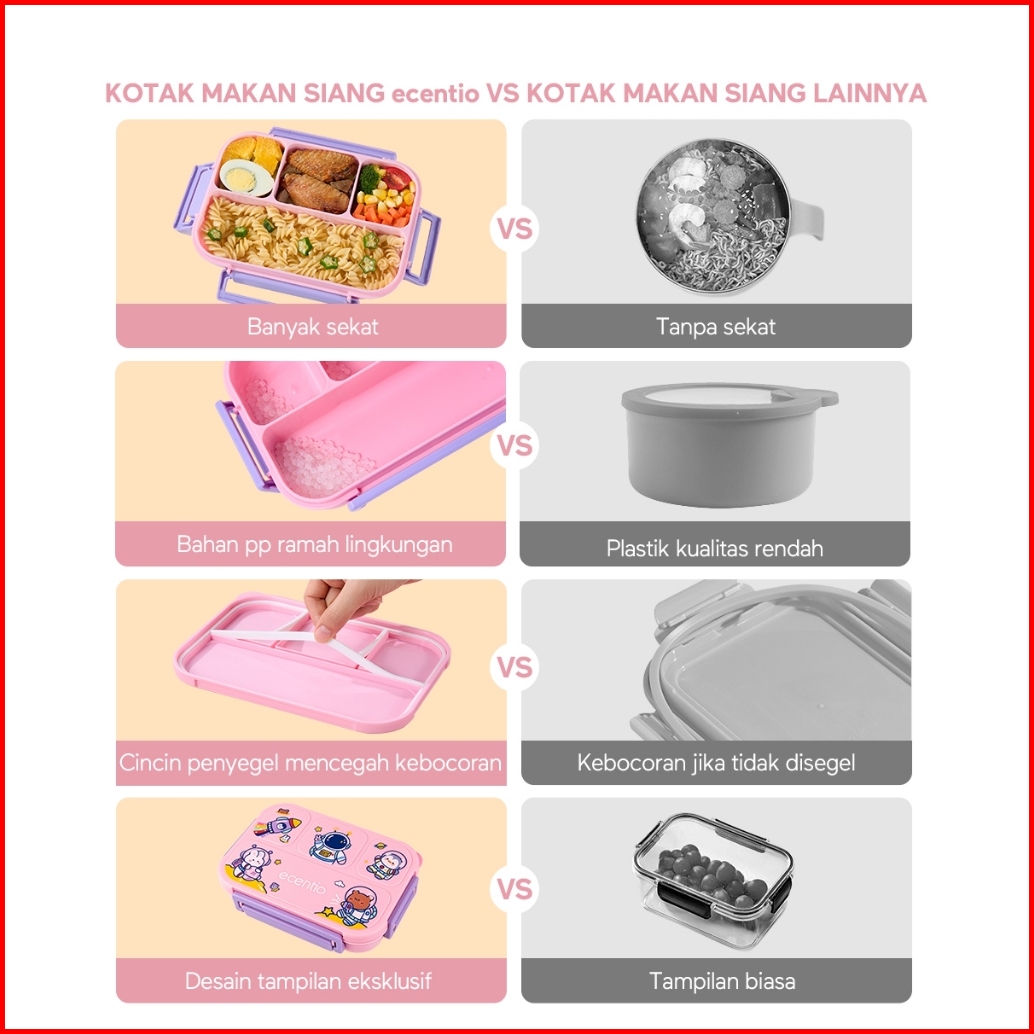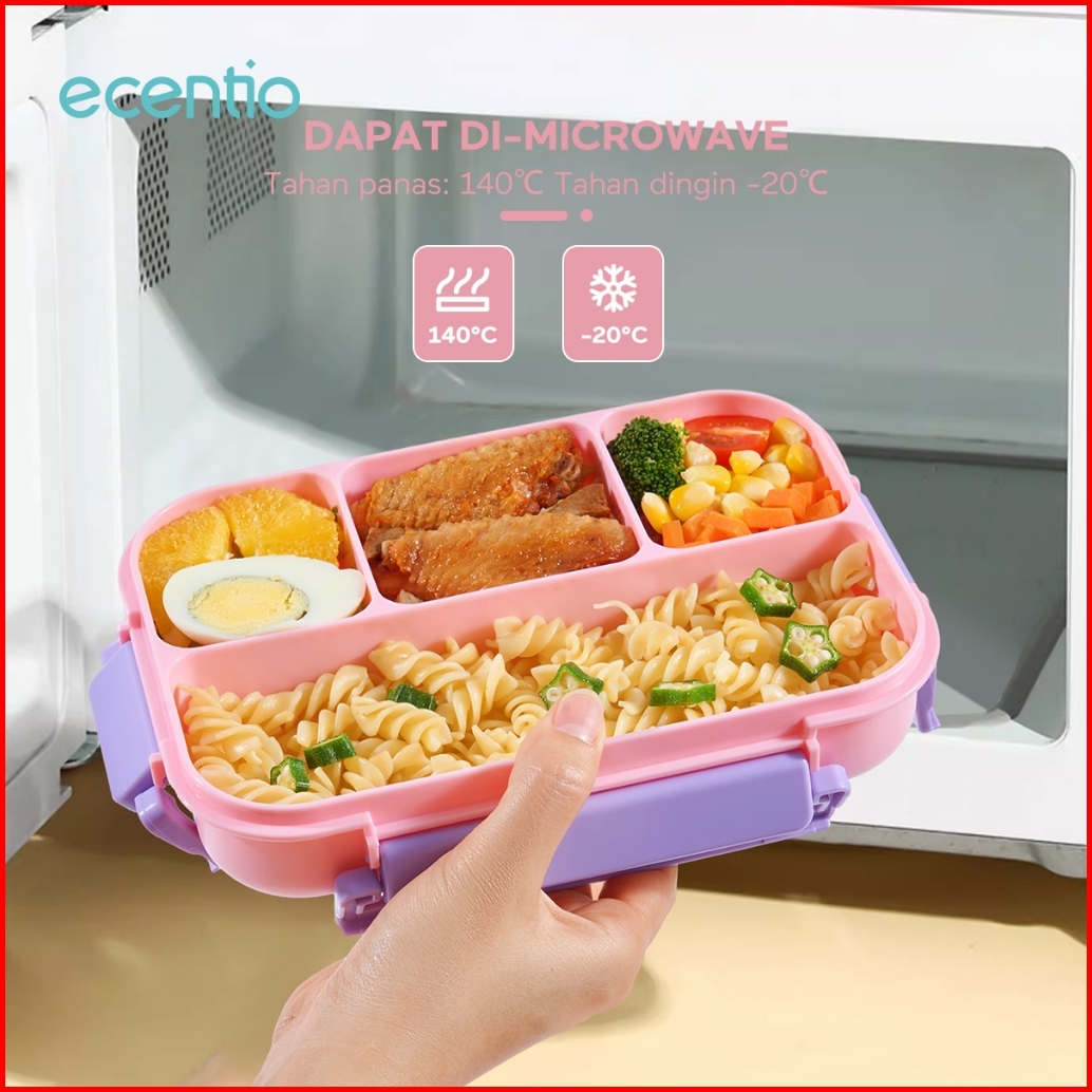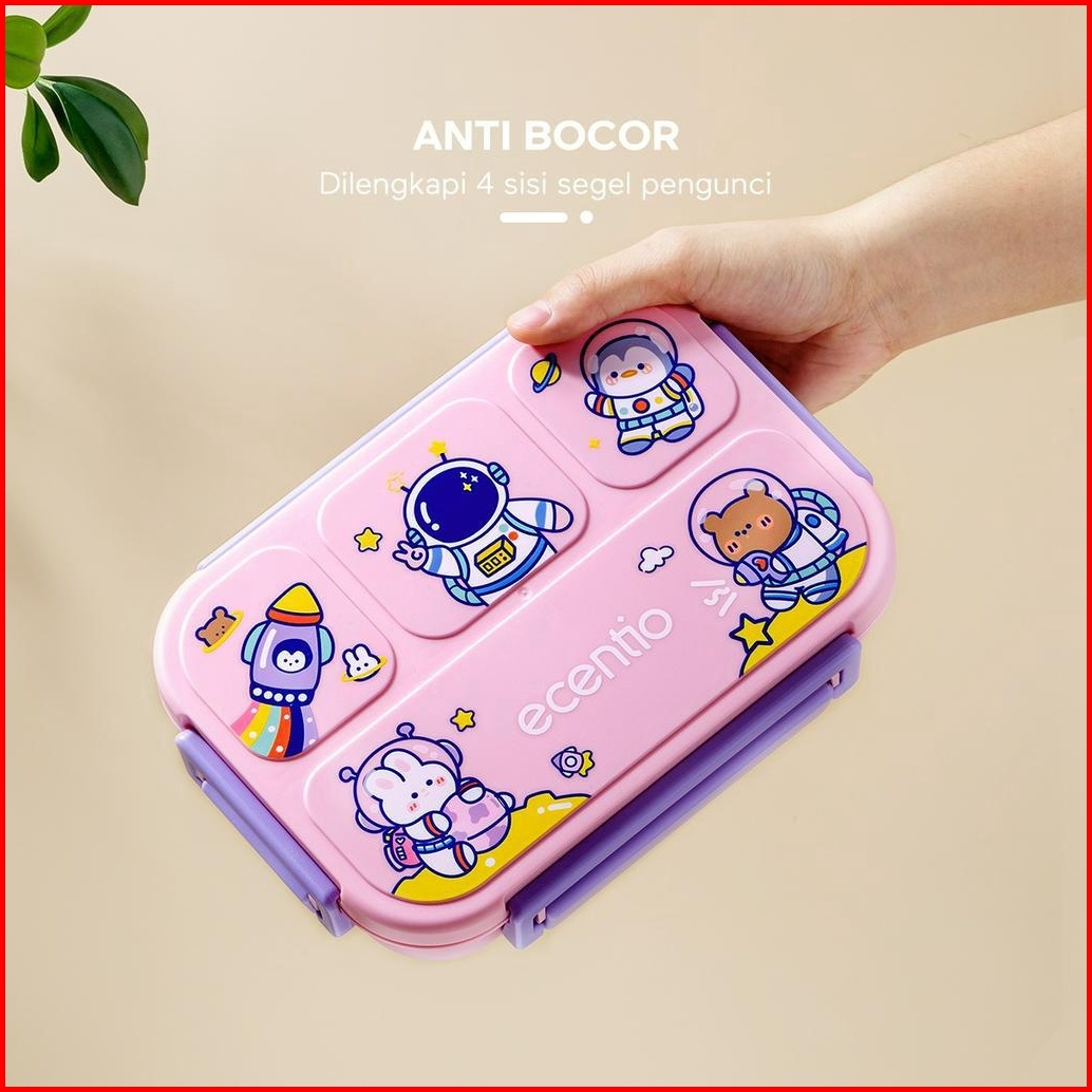 Ecentio Kotak Makan 4 Grid 1000ml Kids Lunch Box Tempat Rantang Makan Bayi Sendok Wadah Bekal Set Anti Tumpah Sup Garpu