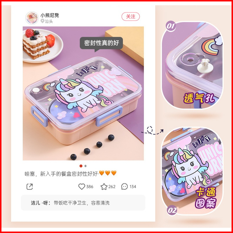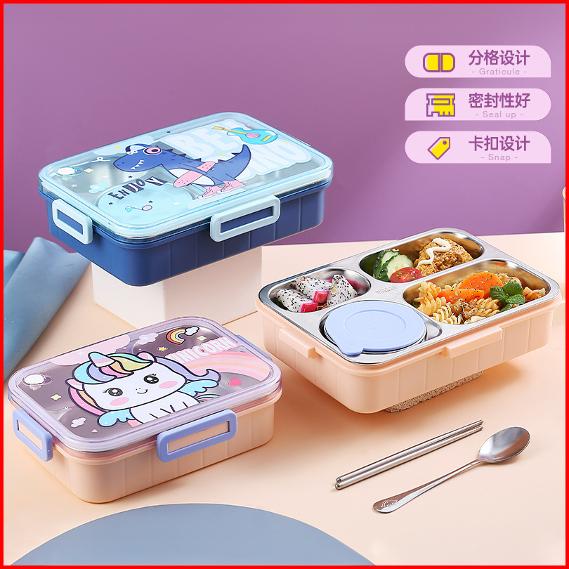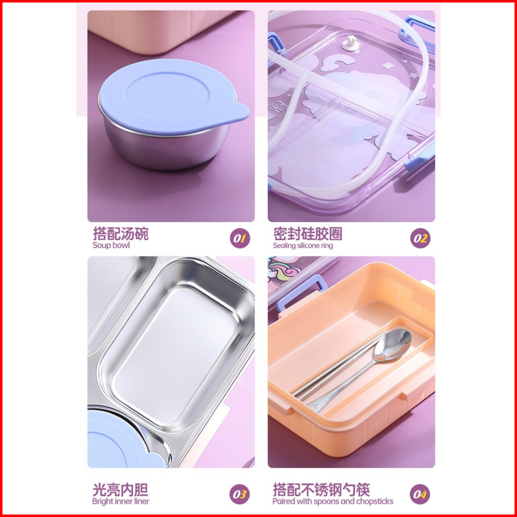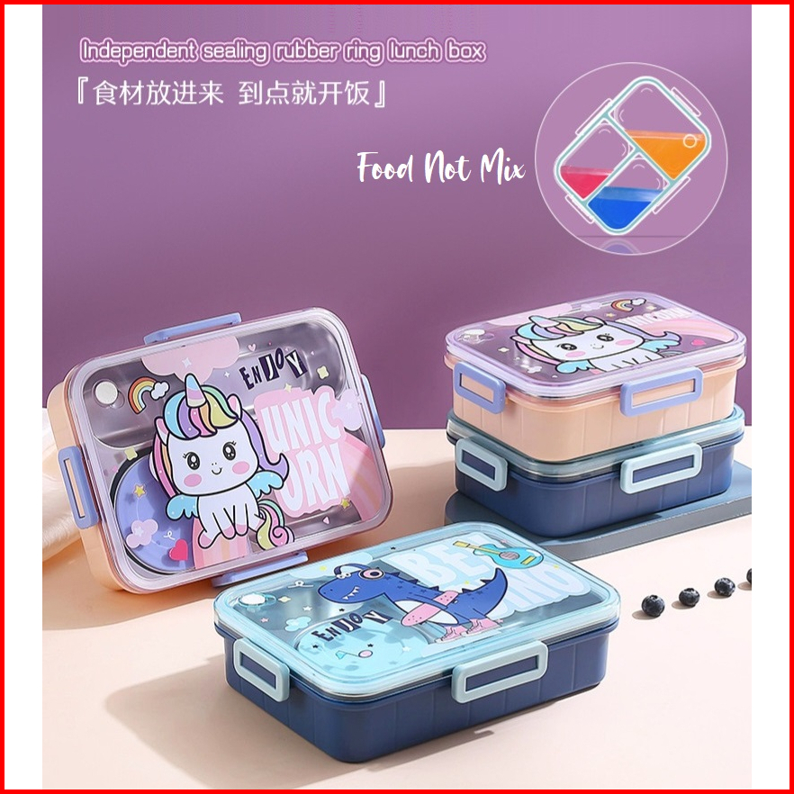 Lunch Box Stainless 304 Dino Unicorn Anti Nyampur Kotak Makan Sekat Tahan Panas Dan Anti Tumpah Tempat Makan Bekal Anak
