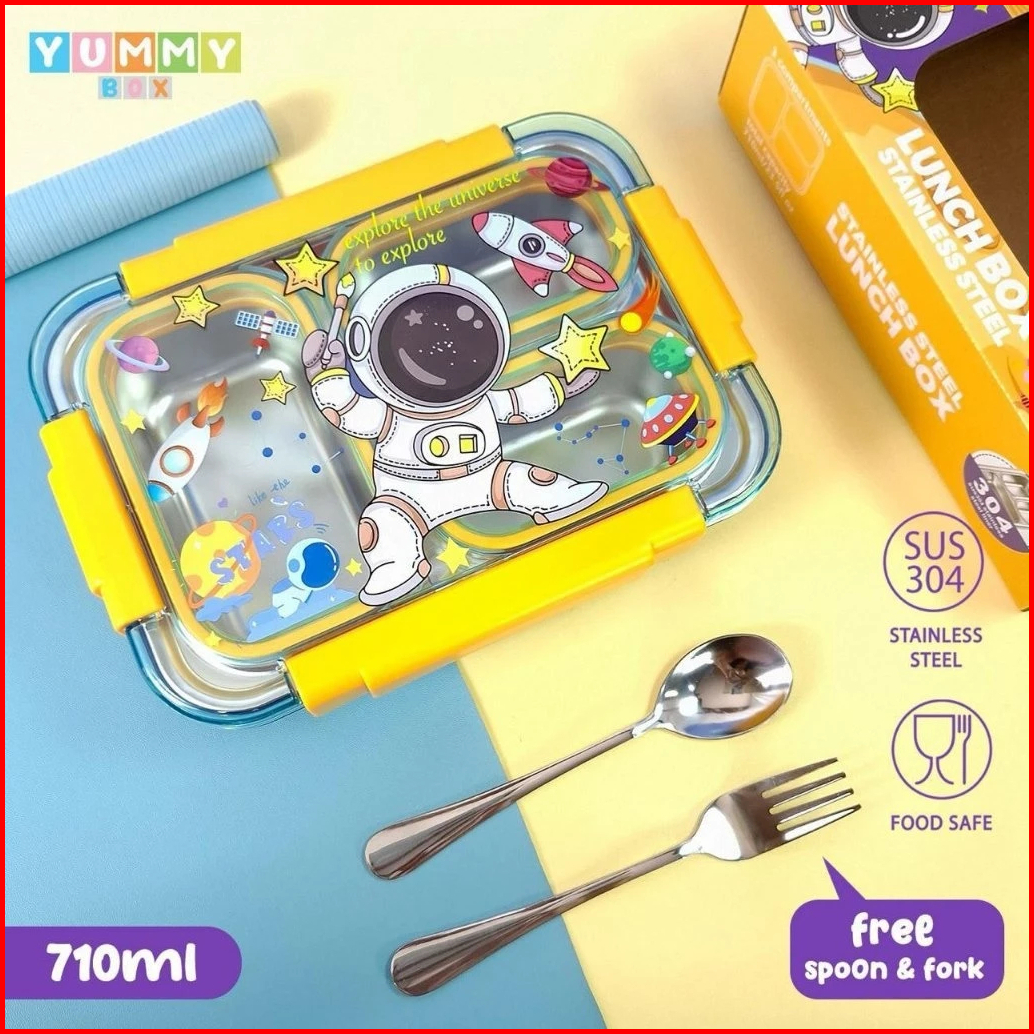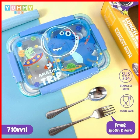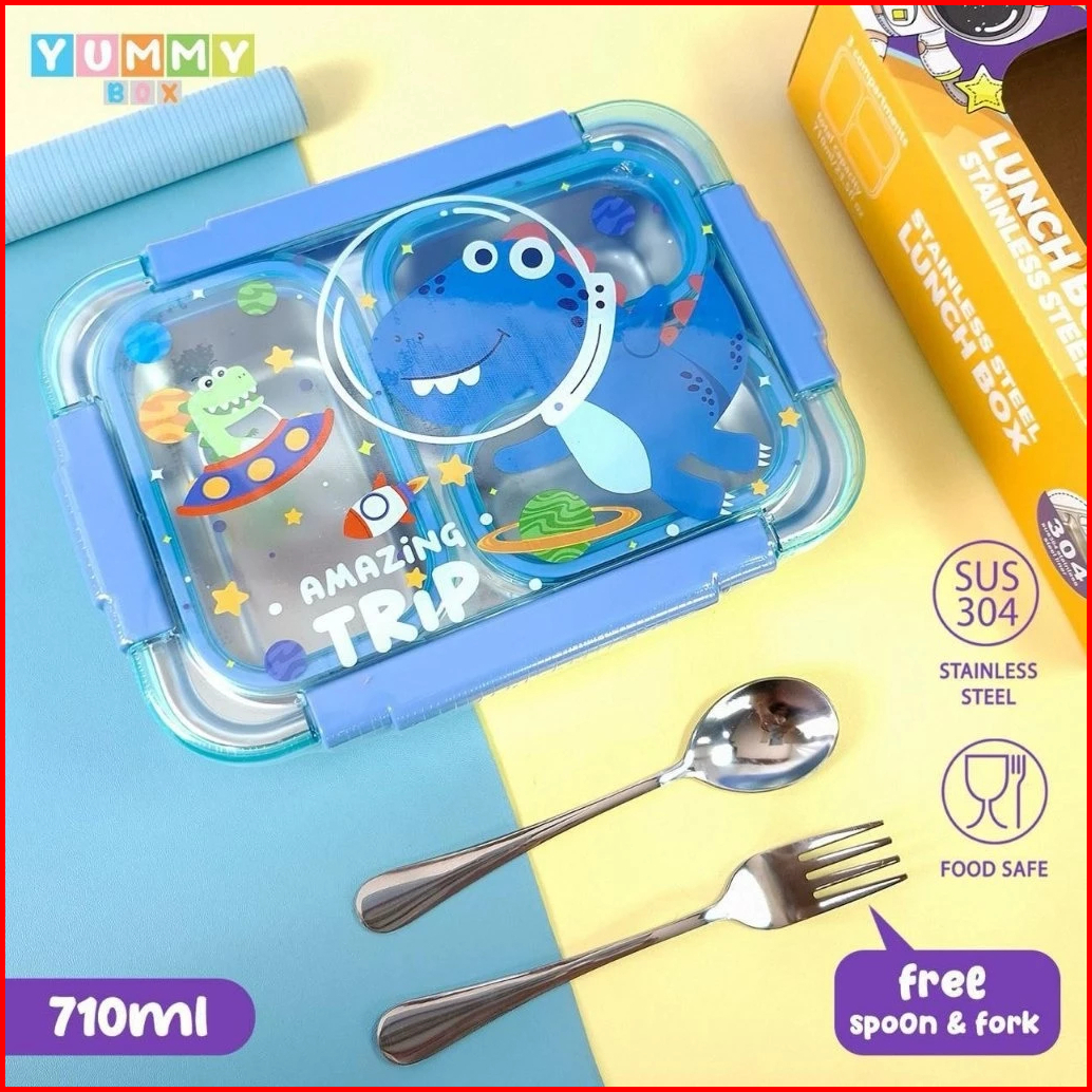 Yummy Box Bento Sekat 3 Bento Lunch Box Stainless Anak 710ml