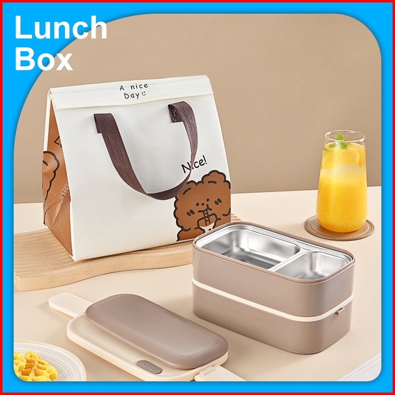 Lunch Box Kotak Makan Siang Stainless Kotak Bento Portabel Tahan Bocor Kotak Bento Microwa