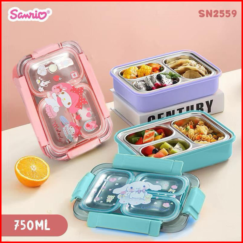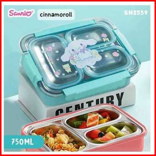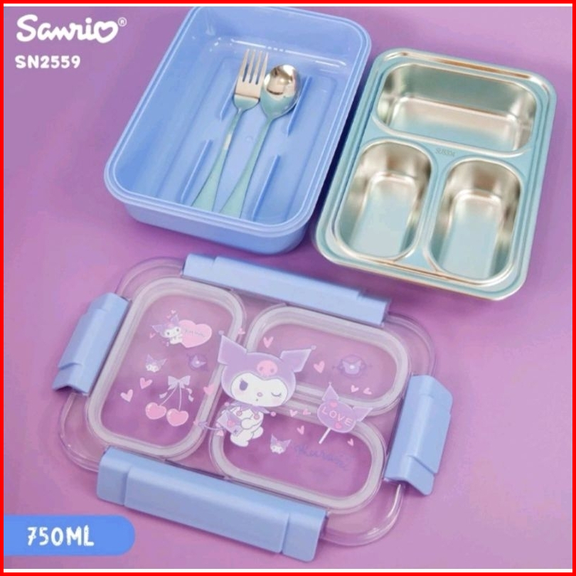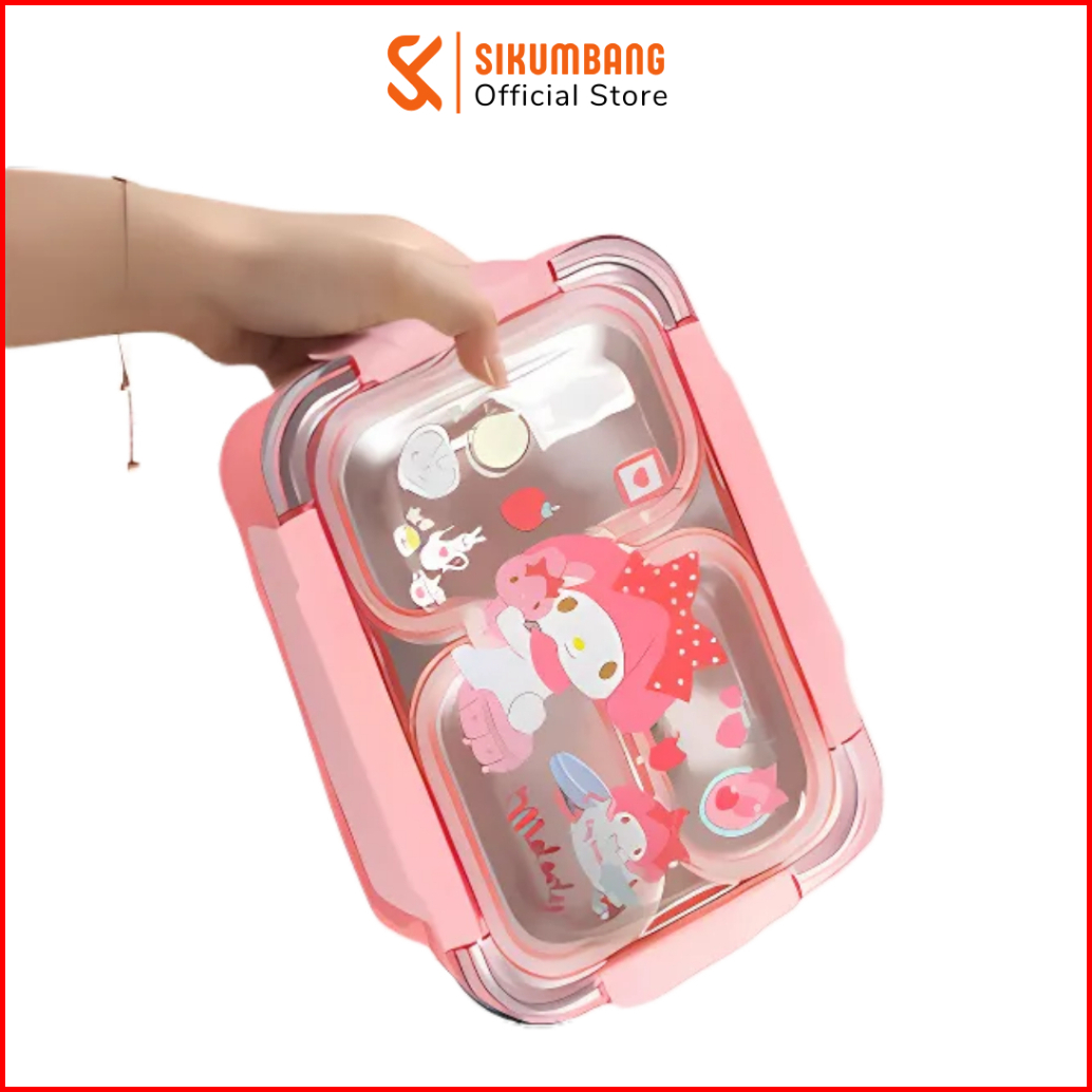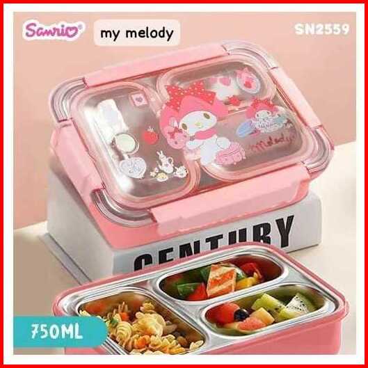 Sikumbang Lunch Box Stainless 304 Sanrio Sn2559 Kapasitas 750 Ml 3 Sekat Kuromi Melody Cinnamoroll