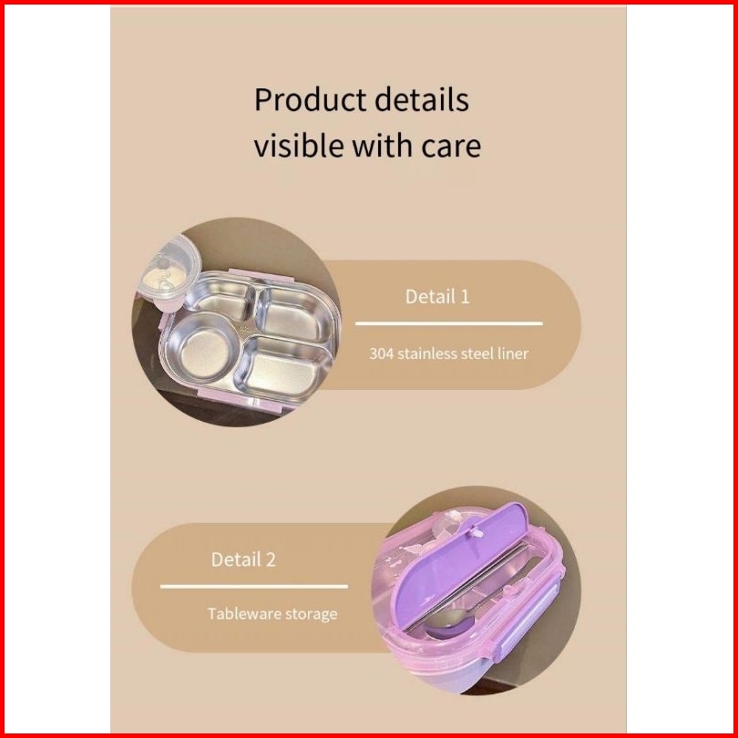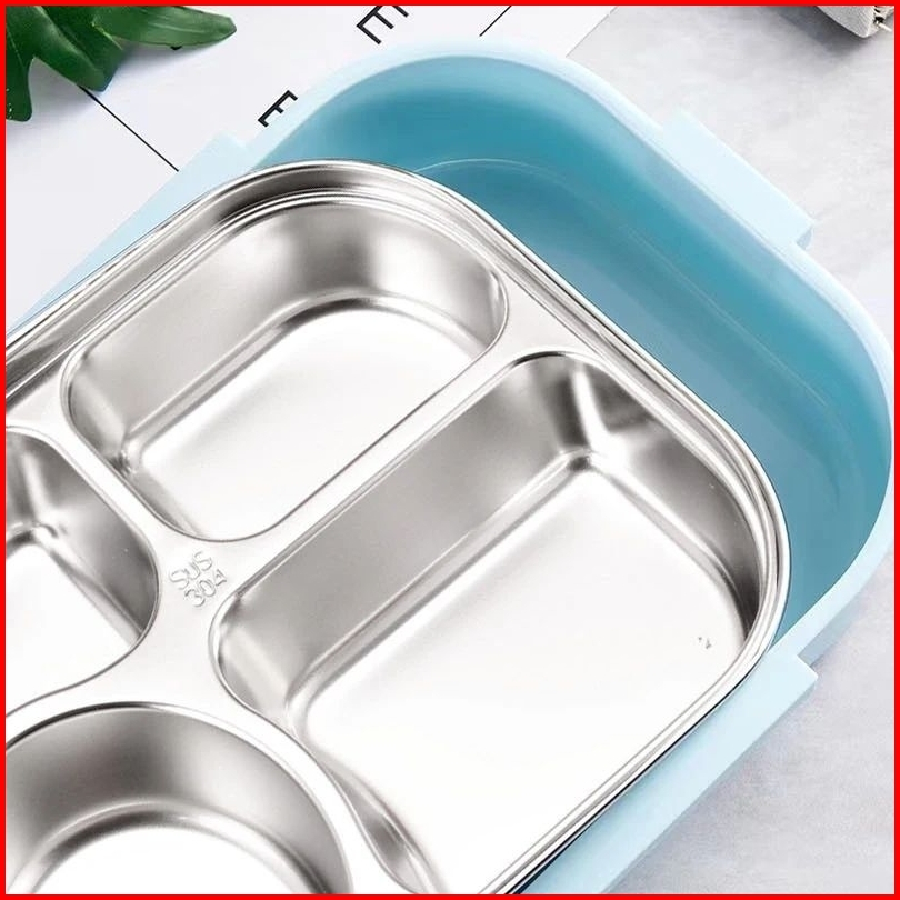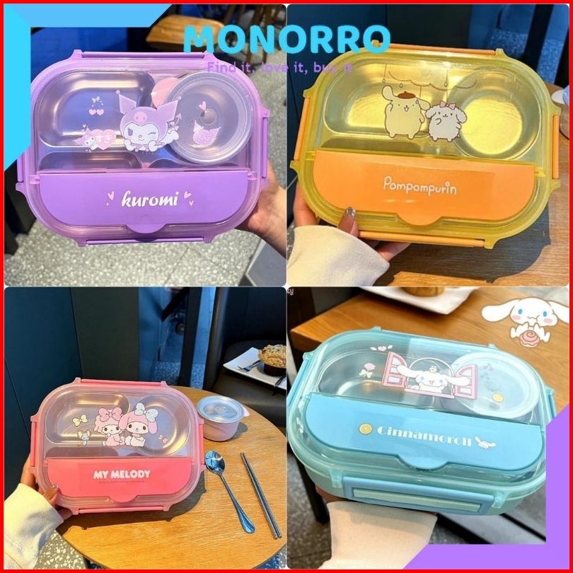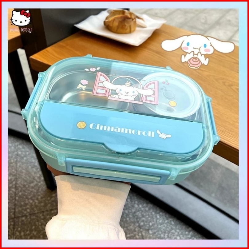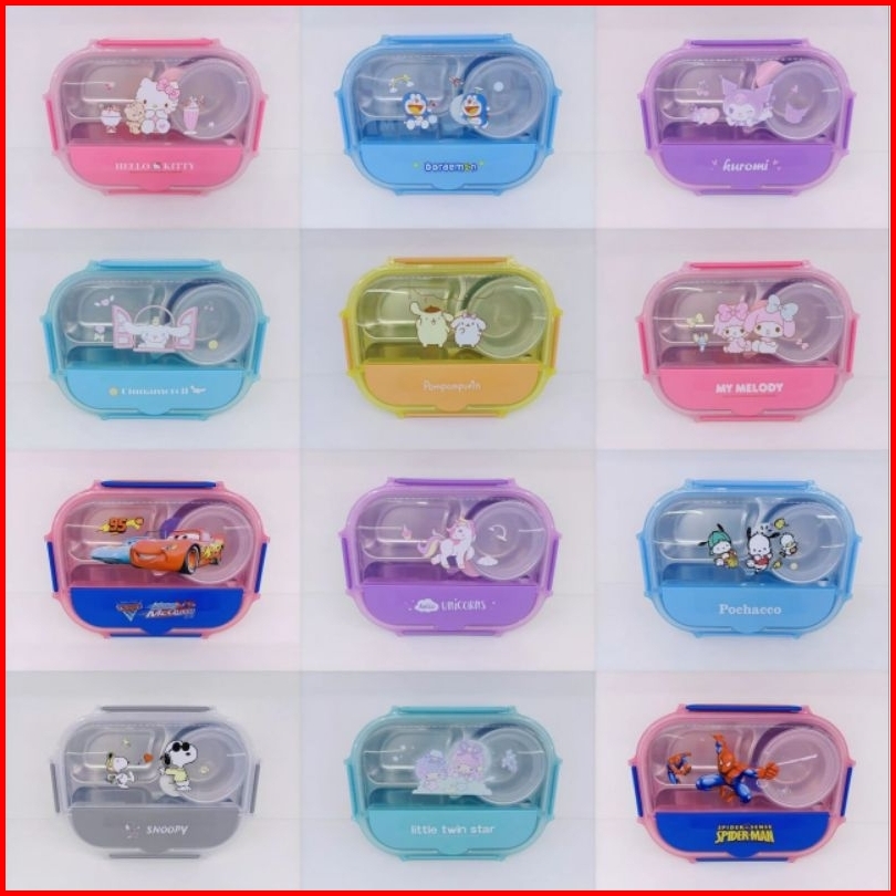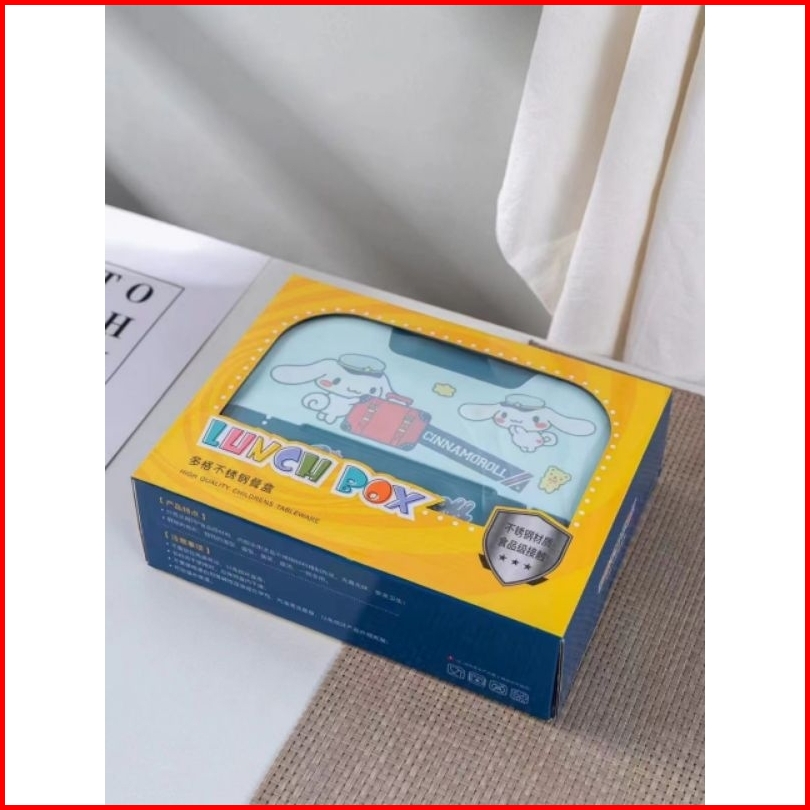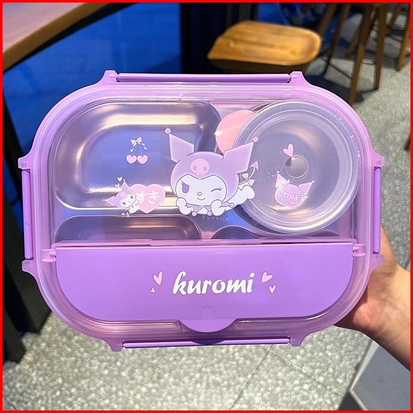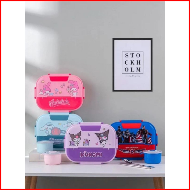 Kotak Makan Stainless Sanrio 4 Sekat Lunch Box Sanrio 1500ml Free Mangkuk Soup Sendok Sumpit