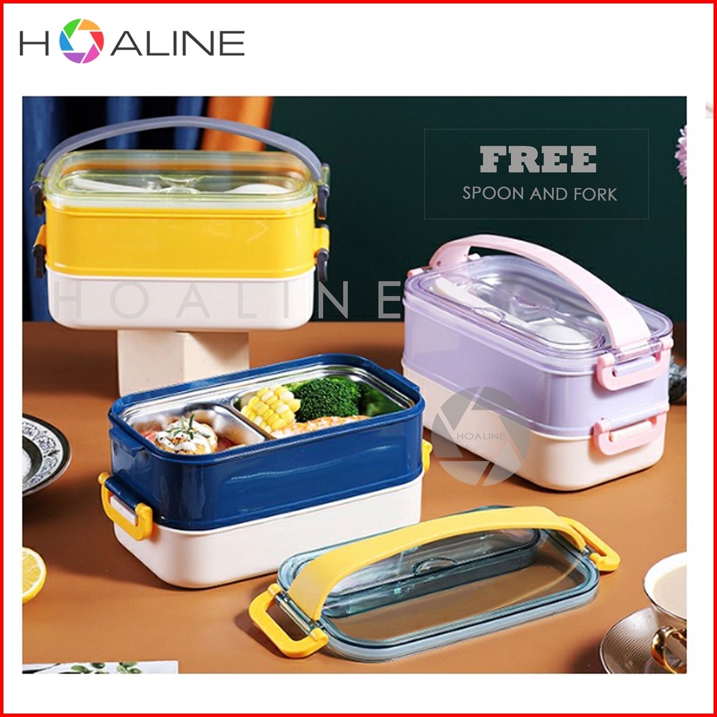 Bento Lunchbox Stackable Stainless Steel 304 Hl 462 Rantang Kotak Bekal Makan 2 Susun Japan Design Free Sendok Garpu Hl