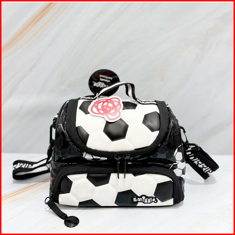 Tas Bekal Anak Sekolah Smigle Goal Kick Black White Lunch Bag - 8028bg