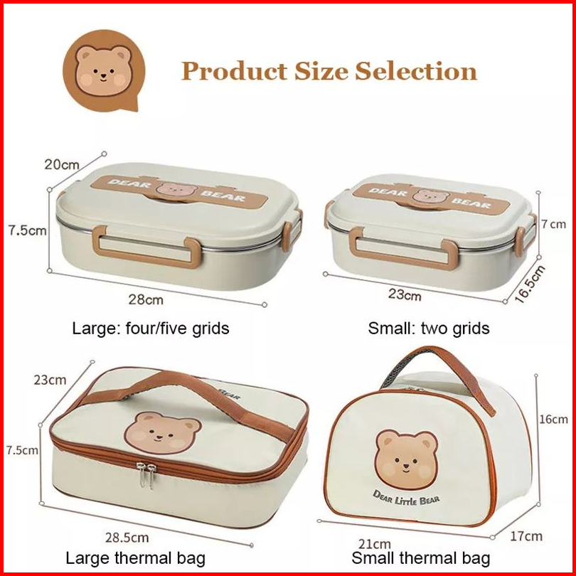 Lunch Box 304 Stainless Steel Bear Series Kotak Makan Bekal Anak Stainless Tahan Panas Anti