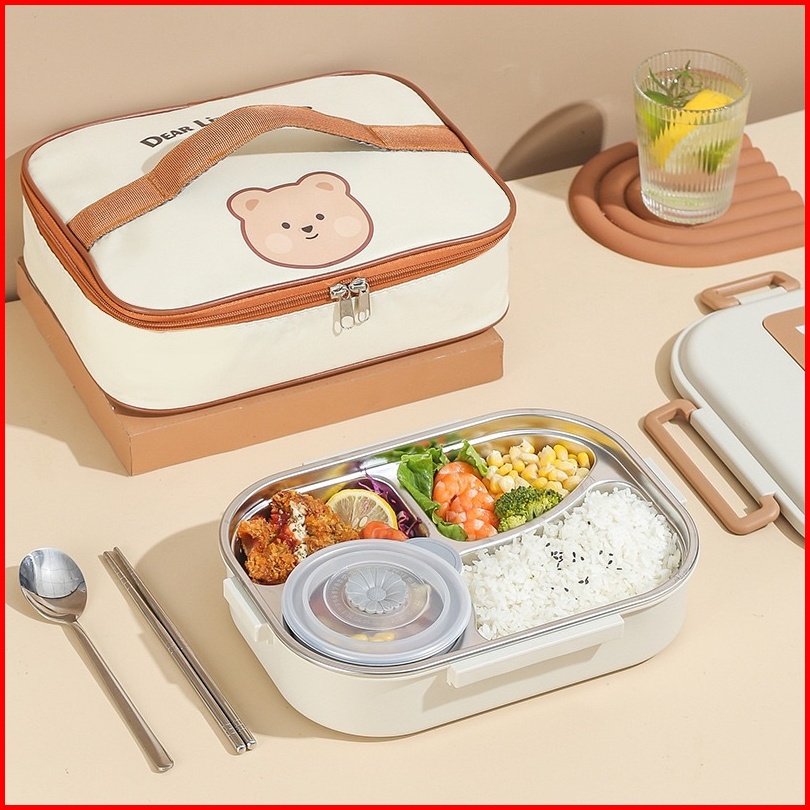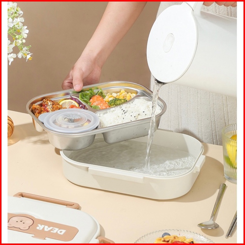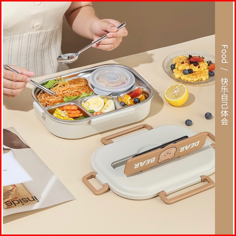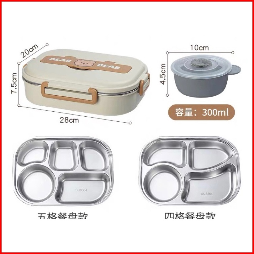 Ready Stock Lunch Box Anak Sekolah Bahan Stainless Steel 304 Bear Series Kotak Makan Sekat 2 4 Dan 5 Tahan Panas Dan Ant