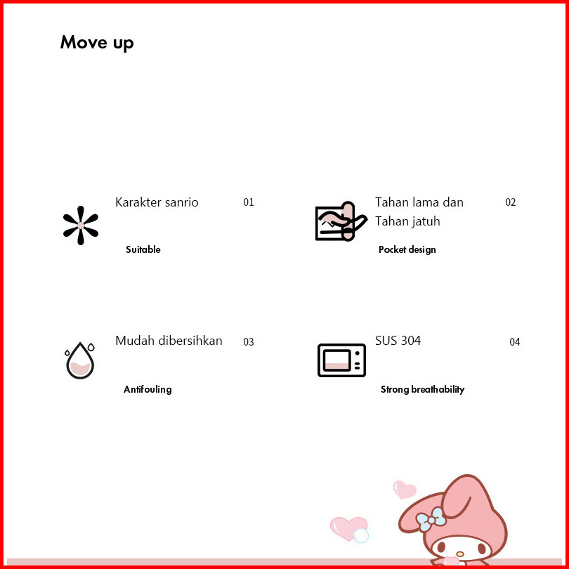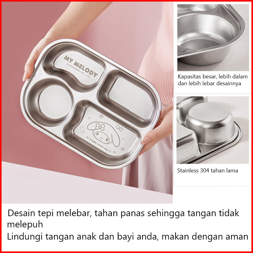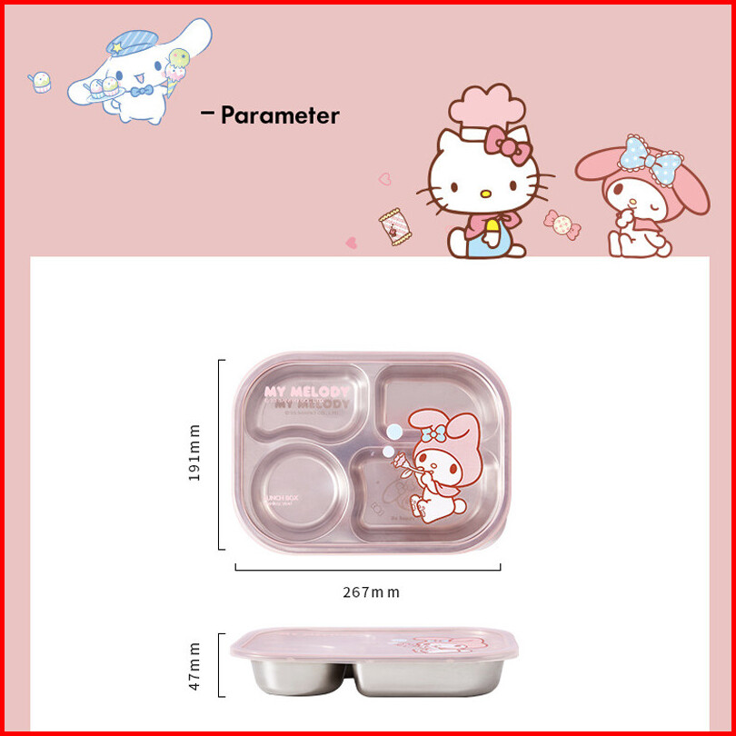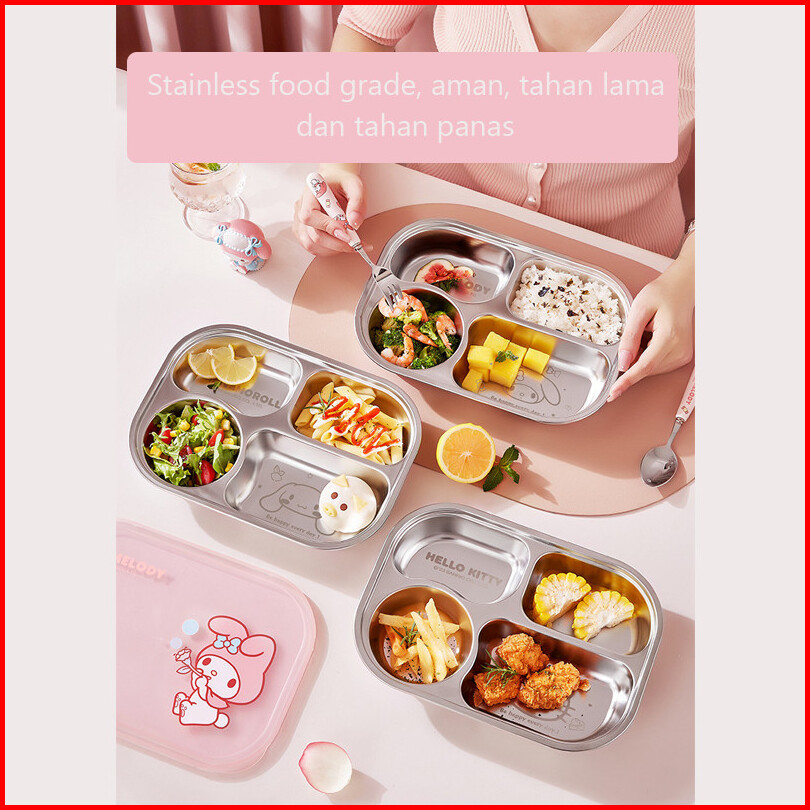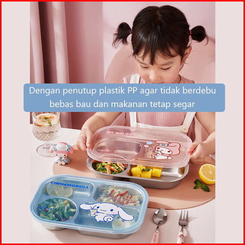 Original Sanrio Lisence Tempat Makan Bekal Makan Lunch Box Stainless 4 Sekat Sisi Anti Tumpah Cinnamoroll My Melody Hell