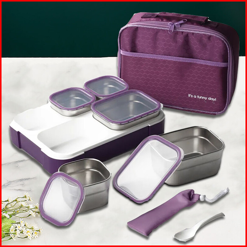 Kotak Makan Box Makanan Stainless 3 5 Sekat Set Dengan Tas Dan Sendok Anti Nyampur Anti Tumpah
