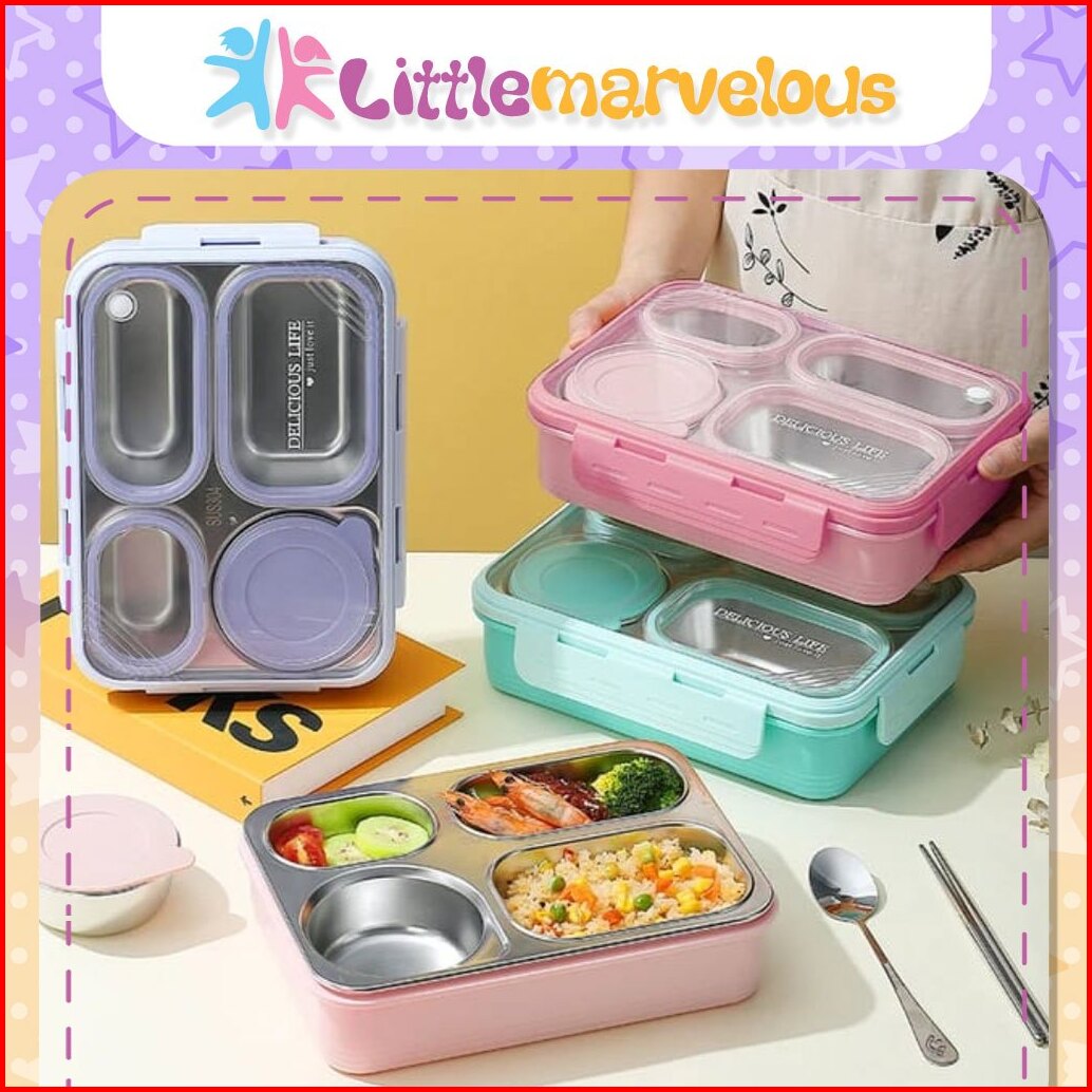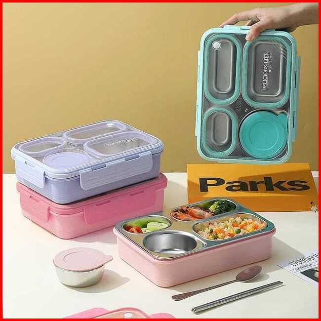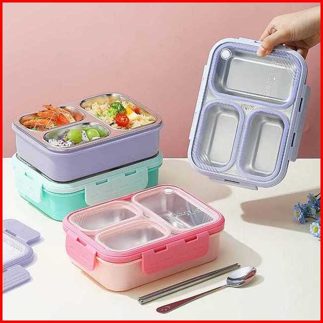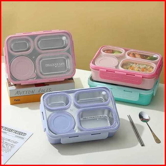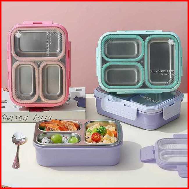 Kotak Makan Lunch Box Stainless Anti Tumpah Anti Nyampur Free Sendok Sumpit Kotak Makan Dengan Seal Karet Kedap