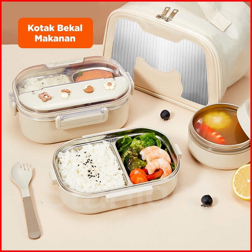 Stainless 304starlight Lunch Box 700 750ml Stainless 304 Sekat 2 3 Dan Anti Tumpah Hmb107