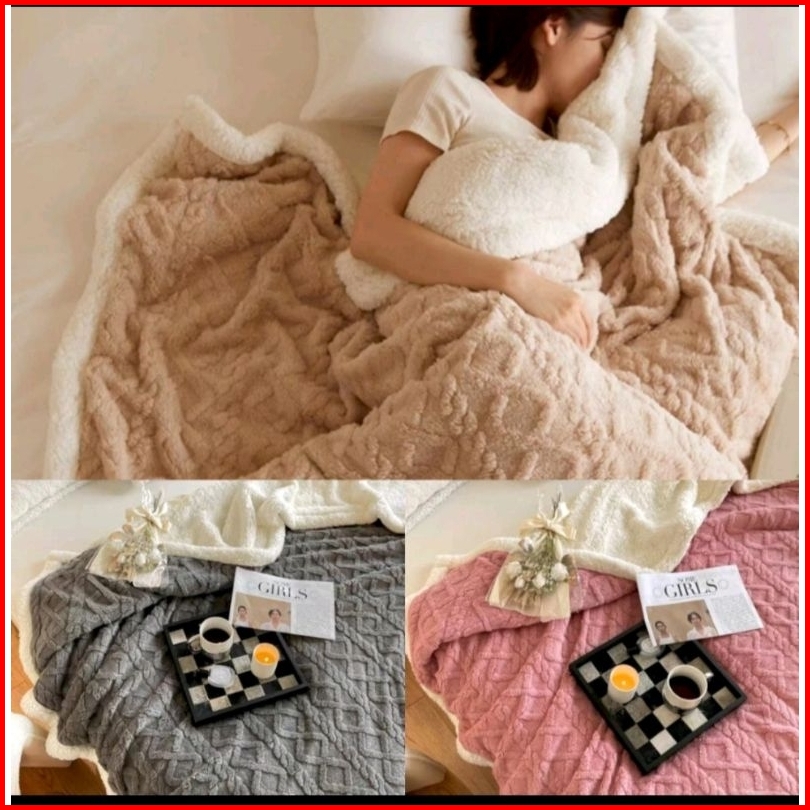Selimut Bulu Domba 180 X200 Dua Sisi Tebal Super Soft Penthouse Selimut Lembut Dan Halus