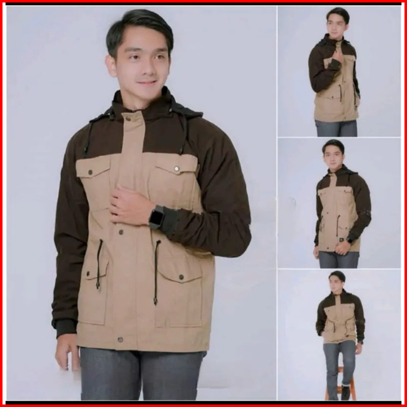 Jaket Semi Parka Pria Kombinasi Polos Terbaru Bahan Kanvas Premium Resleting Musim Dingin Unisex Distro Original