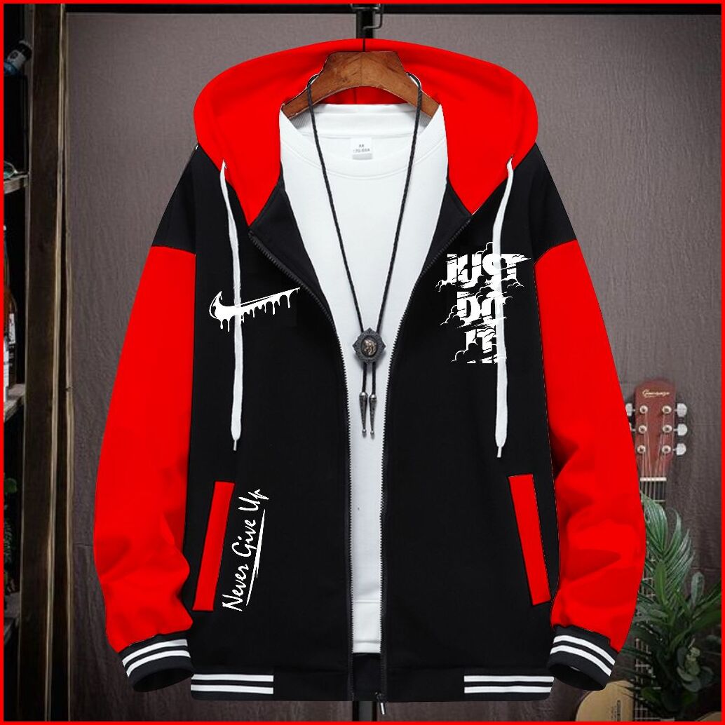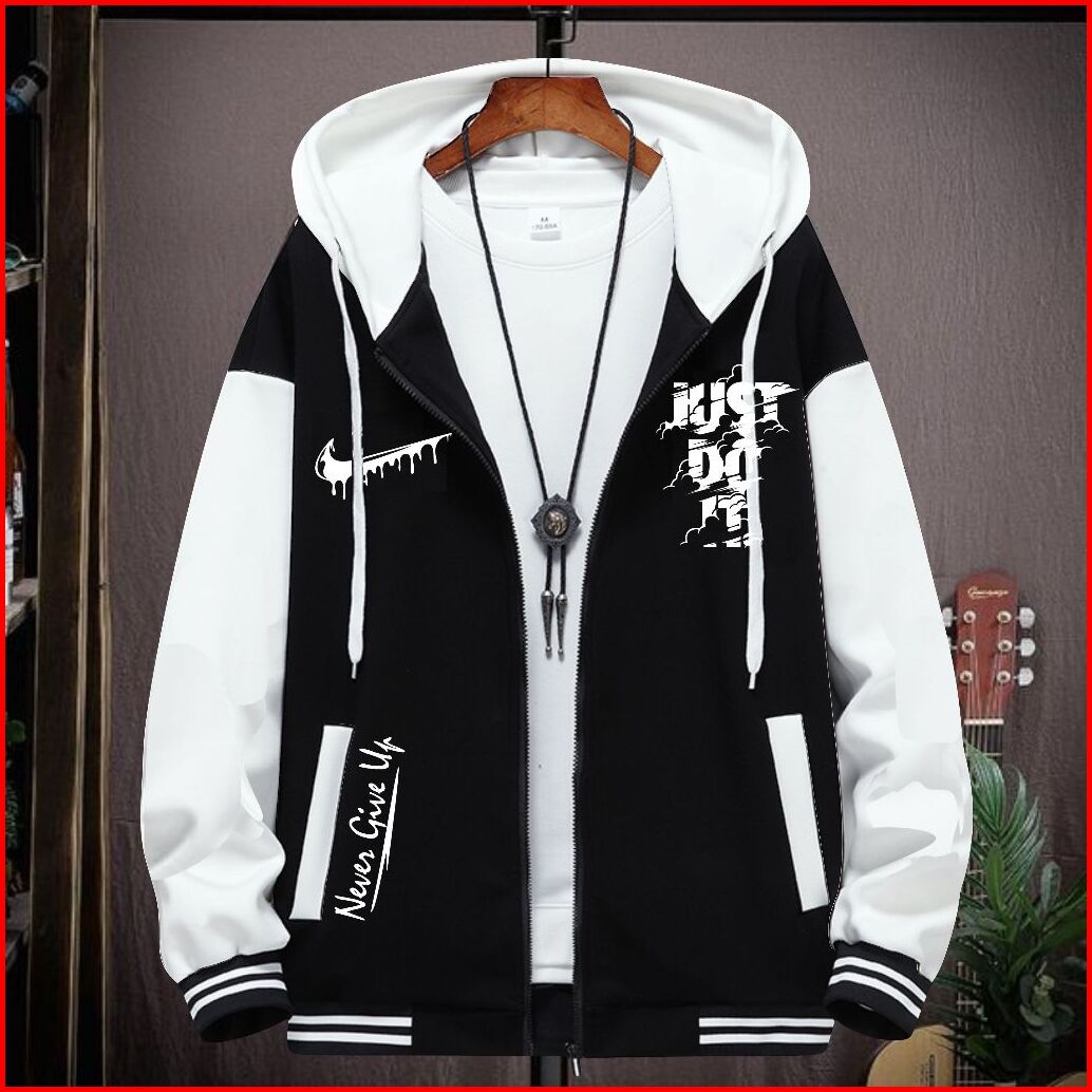 Jaket Oversize Jaket Zipper Varsity Basseball Never Give Up M - 6xl Bomber Bahan Tebal Pria Wanita Jumbo Big Size S M L