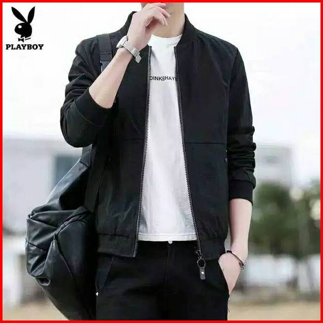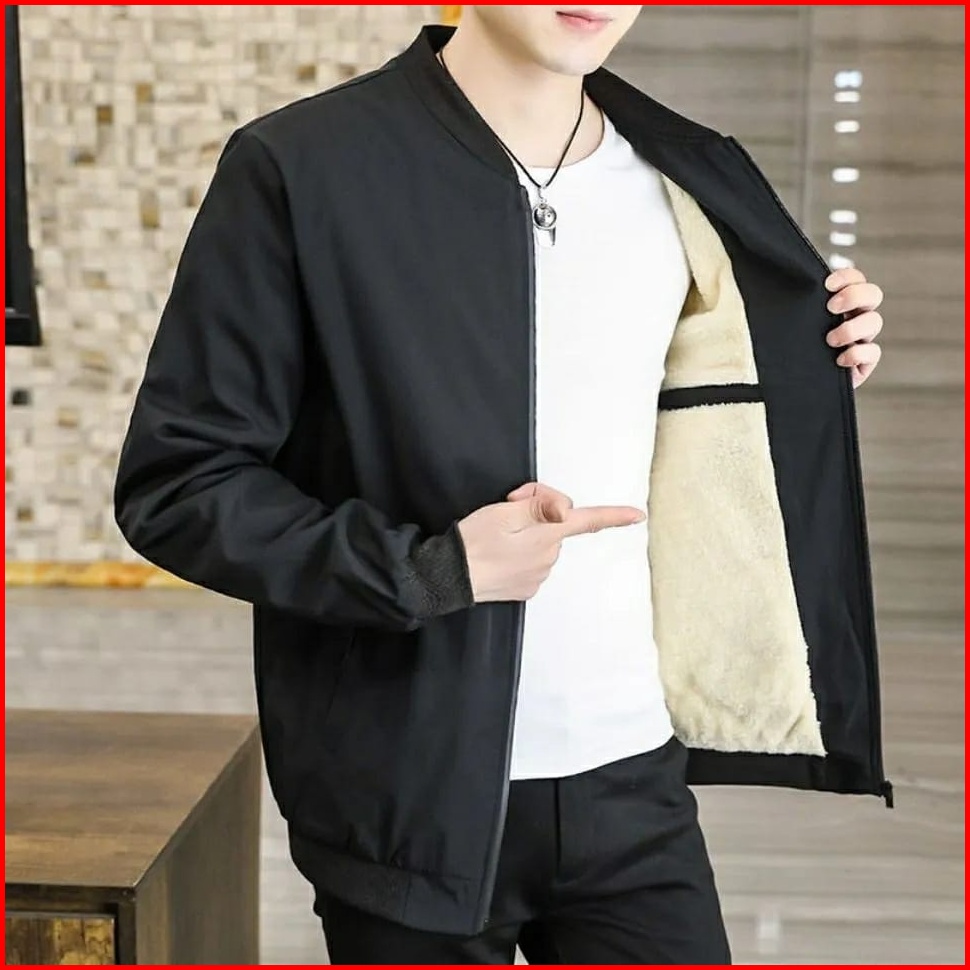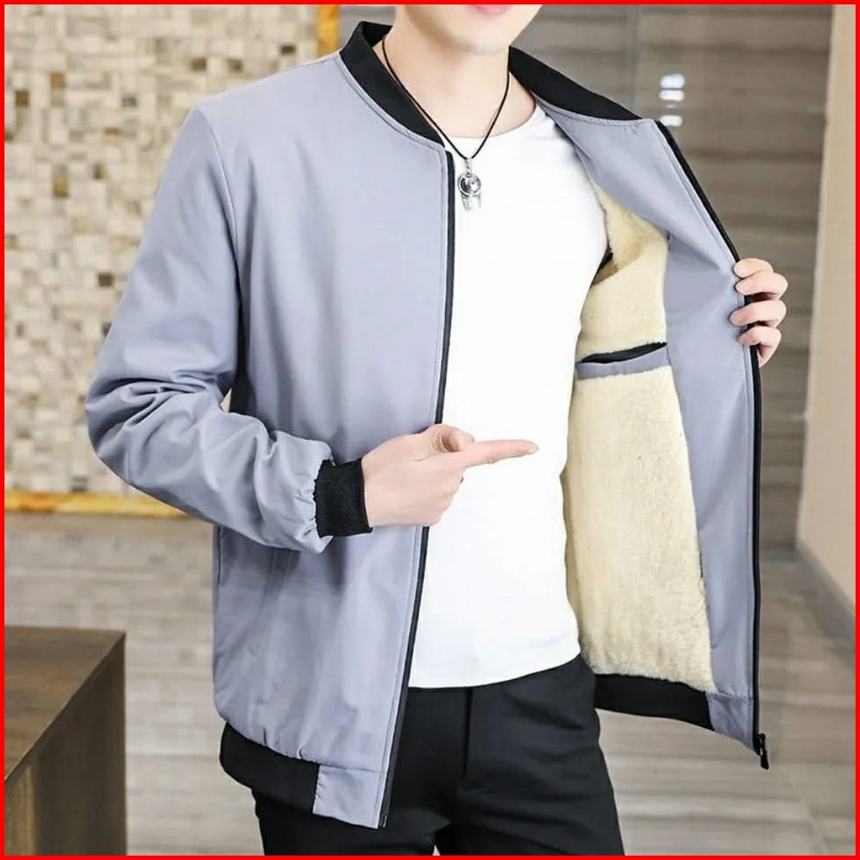 Jaket Bomber Pria Bulu Tasland Trand Line Black And Drak Grey Ziper Tasland Waterprop Laki Laki Stayles 1