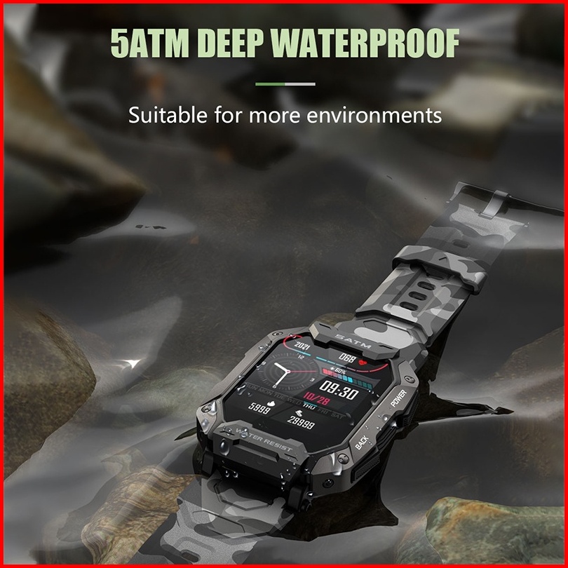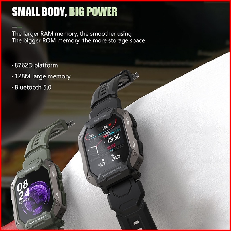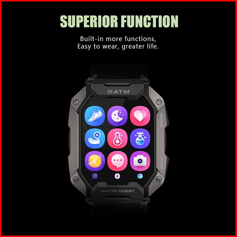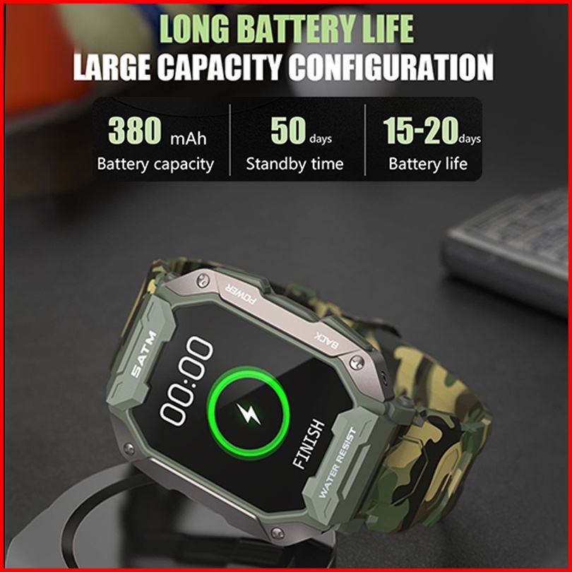 Searchai Jam Tangan 5atm Jam Pintar Pria C20 Outdoor Men S Watch 1.71 Inch Hd Large Screen Bluetooth Deep Waterproof 380