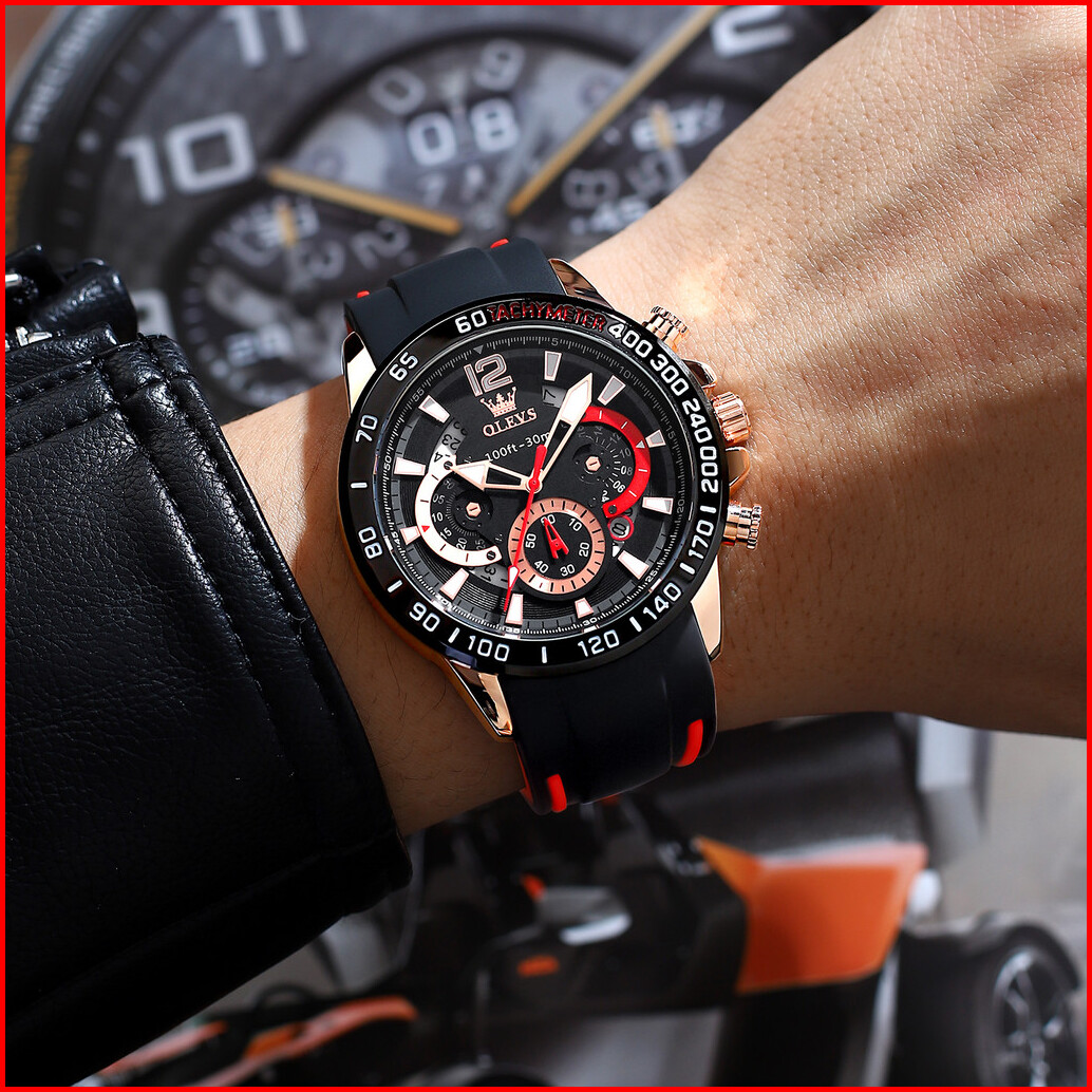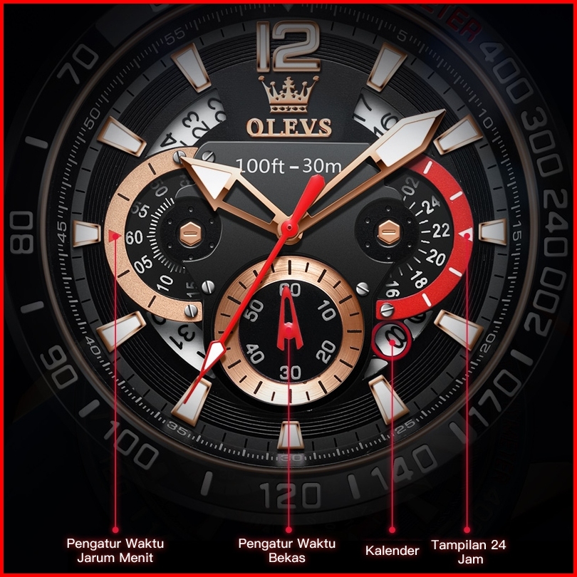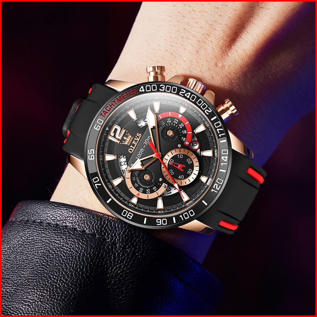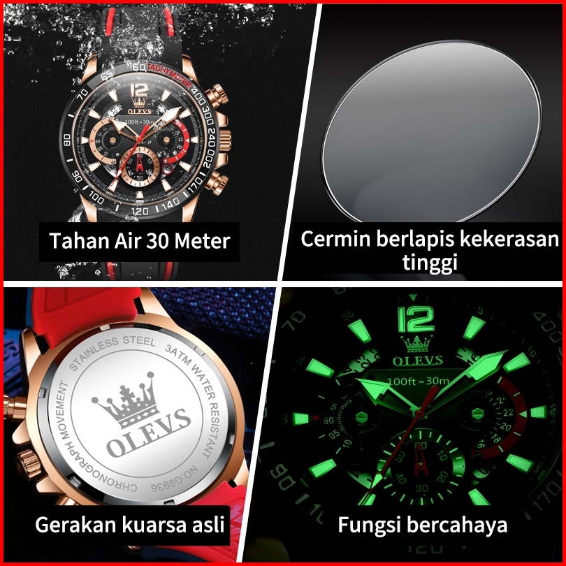 Olevs Jam Tangan Pria Anti Air Original Rantai Keren Mewah 2024 Luxury Chronograph Tali Silikon Multifungsi Watch Men