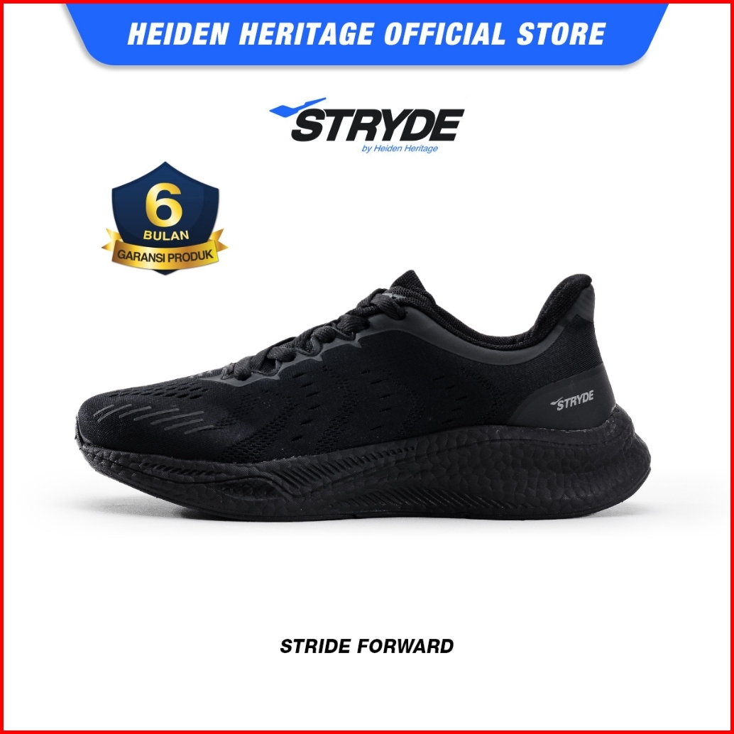 Heiden Heritage Hrtg - Boom Stryde - Full Black - Sepatu Sport Running Sekolah Casual Style Lari Pria Dewasa - Stryde