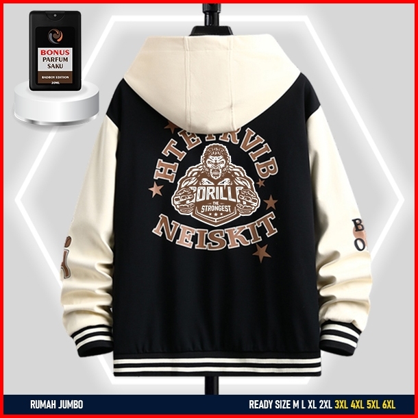 Jaket Pria Hoodie Zipper Hitam Cream Jumbo Gorila M-6xl Hoodie Oversize Jaket Hodie Zipper Custom