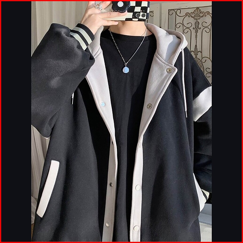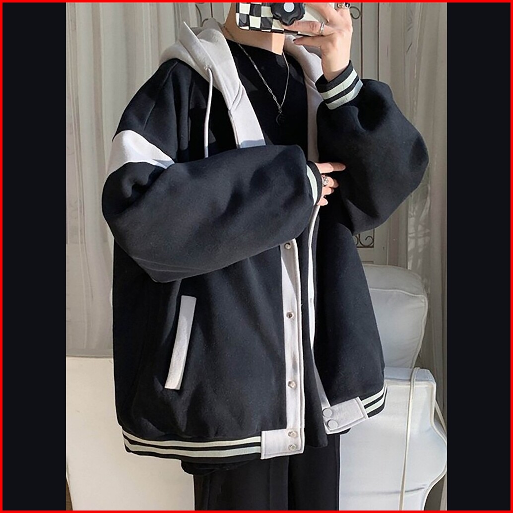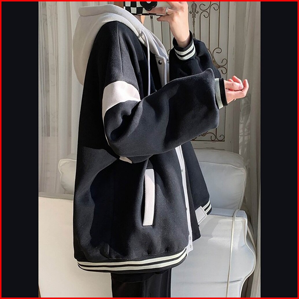 S - Xxxxxl 6xl Varsity Hoodie Polos Kancing Jumbo Kombinasi Warna Bigsize Jaket Fleece Korean Style Wanita Pria Oversize