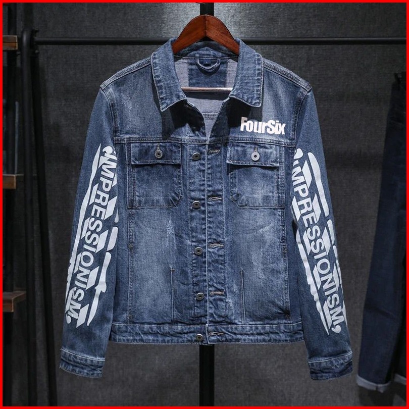 Jaket Jeans New Model Printing Sablon Dtf Bahan Denim Jaket Pria Casual Size M L Xl Xxl
