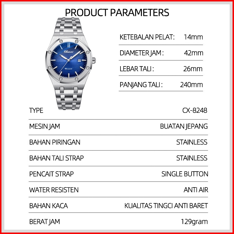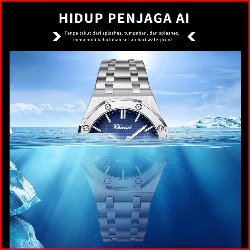 Jam Tangan Otomatis Chenxi 8248 Pria Dewasa Cowok Terbaru Analog Stainless Steel Bercahaya Tanggal Stylish Fashion Kasua