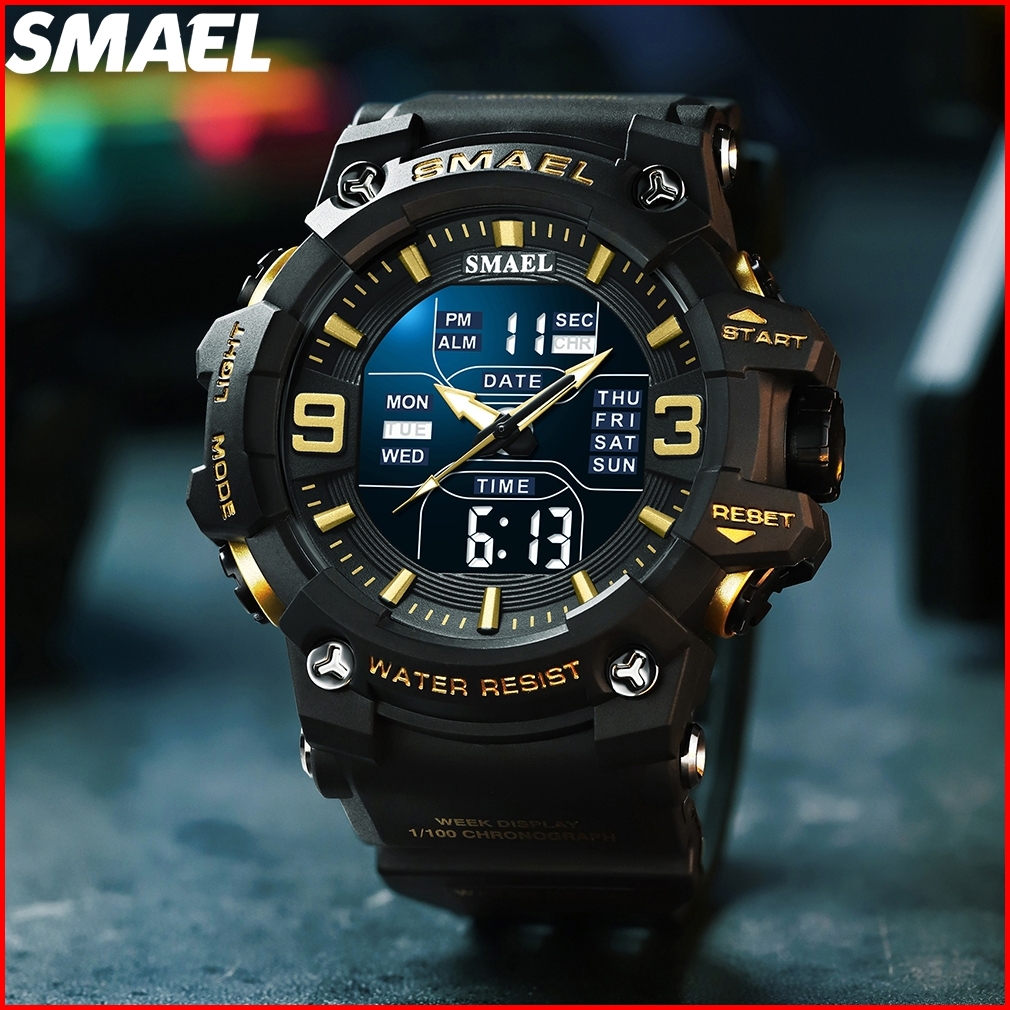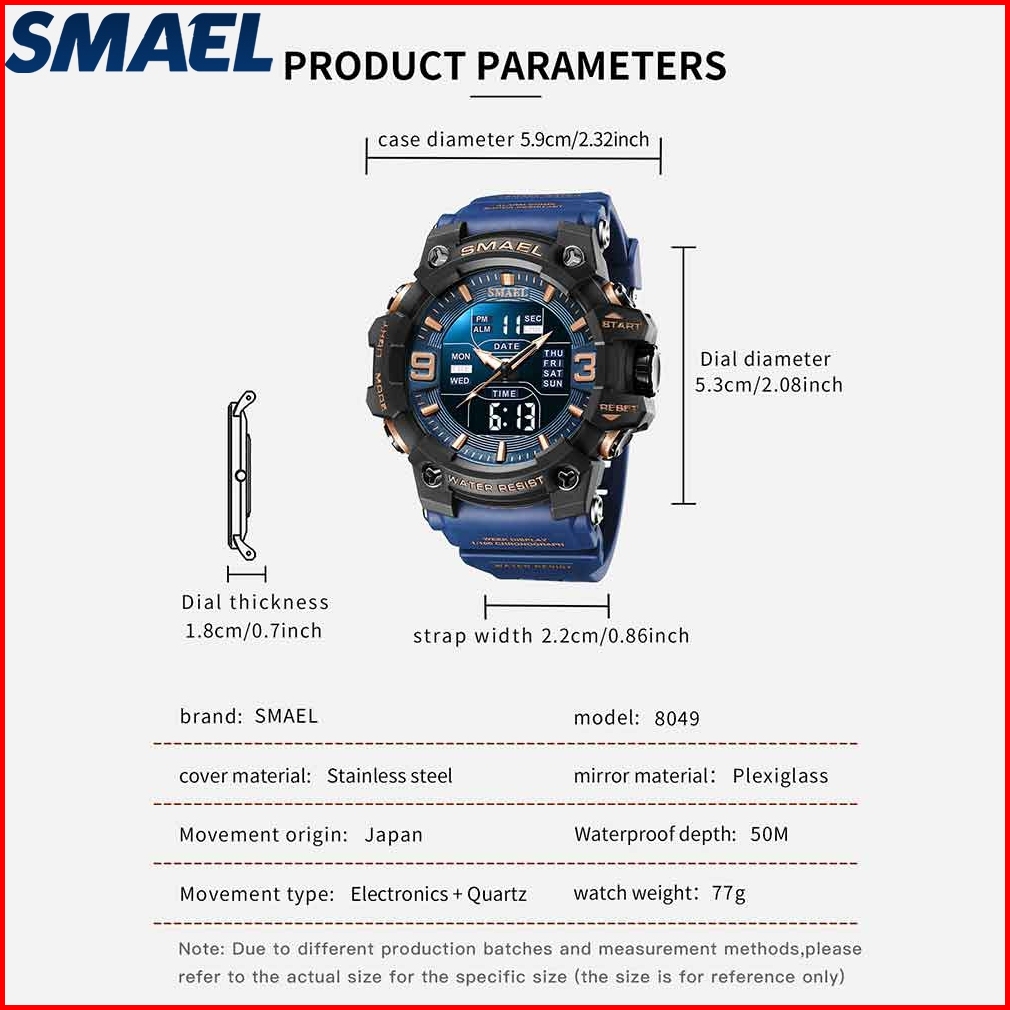 Smael 8049 Jam Tangan Elektronik Tahan Air Untuk Pria Multifungsi Dengan Lampu Penerangan Dan Alarm