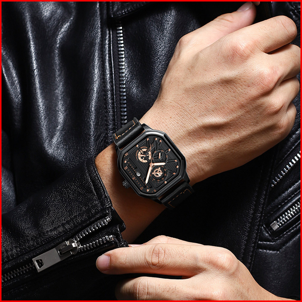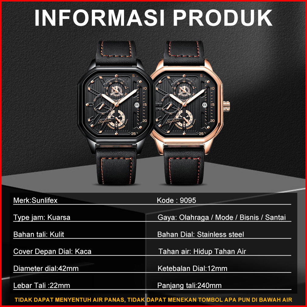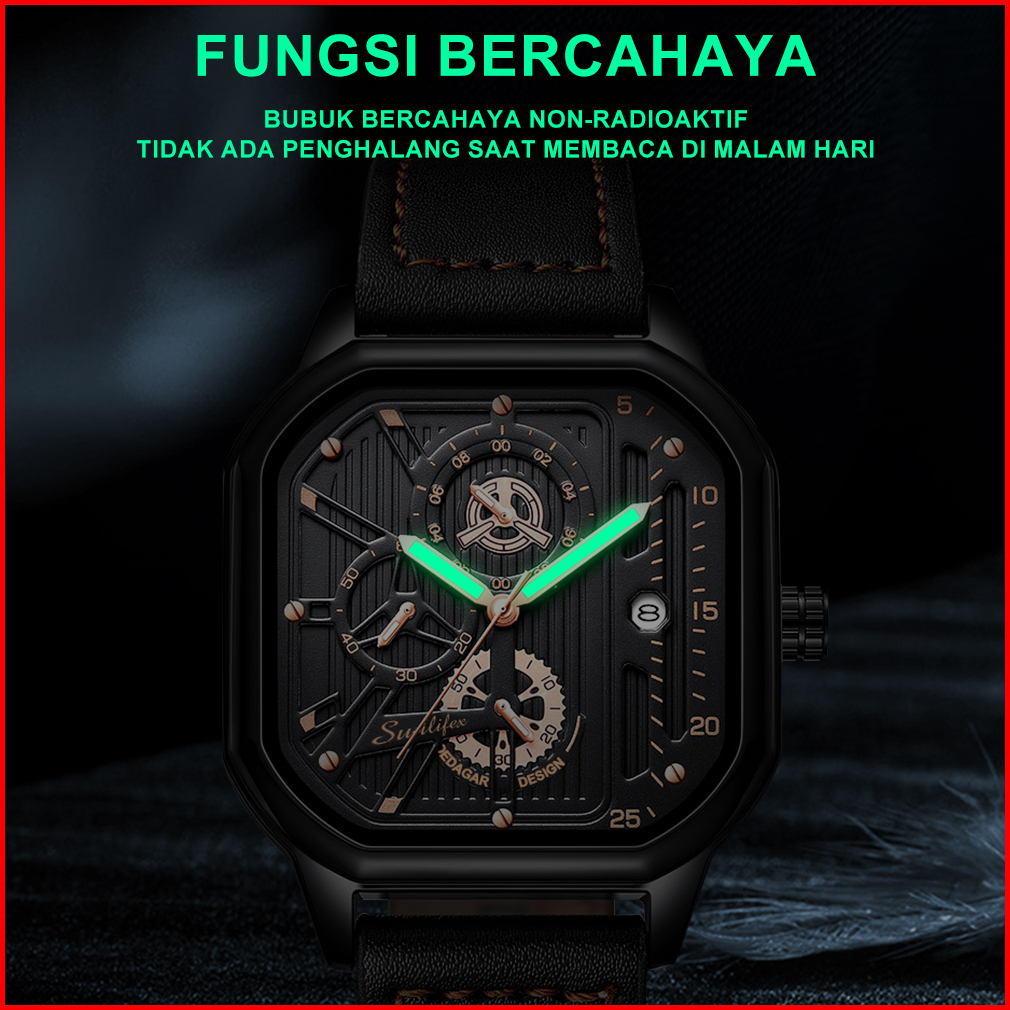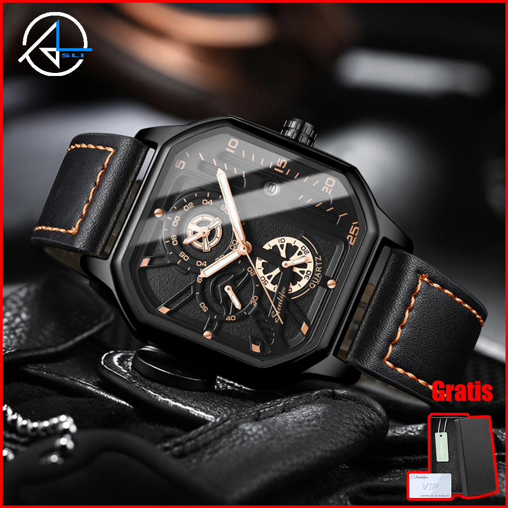 Jam Tangan Pria Original Sunlifex Kuarsa Olahraga Kasual Tali Kulit Jam Tangan Cowok