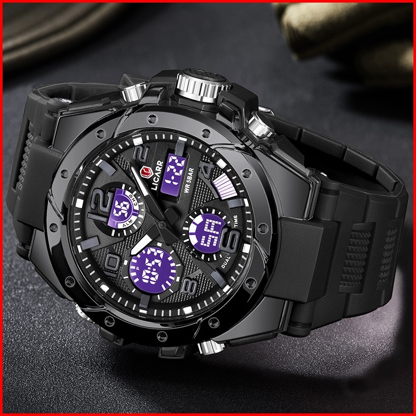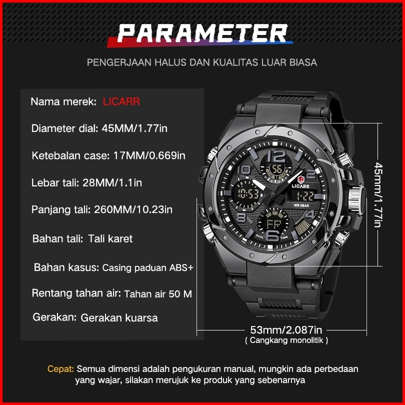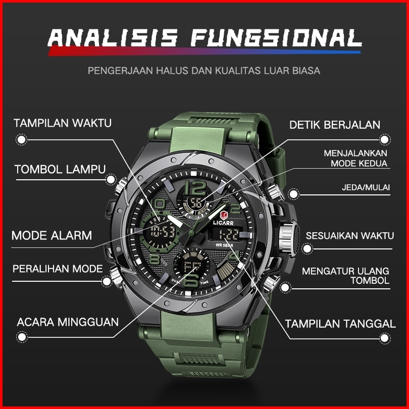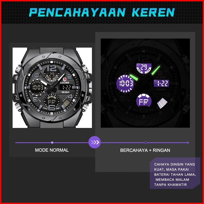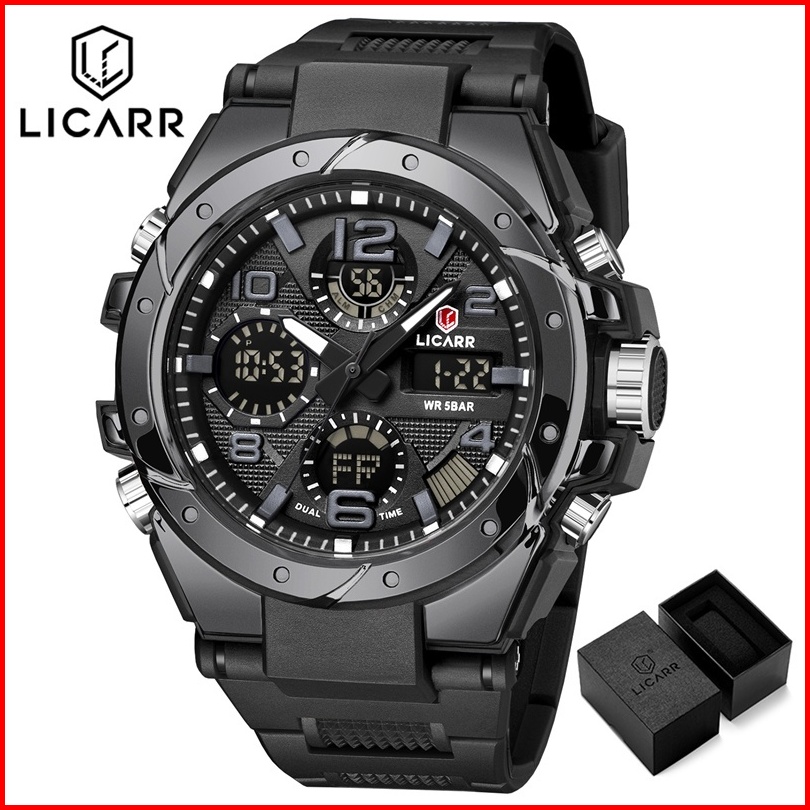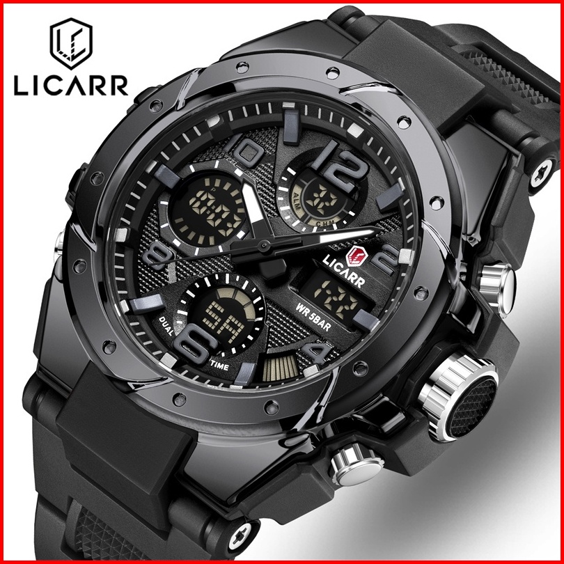 Licarr Jam Tangan Pria Merek Fashion Analog Digital Santai Kuarsa Anti Air Olahraga Multifungsi Jam Tangan Cowok Origina