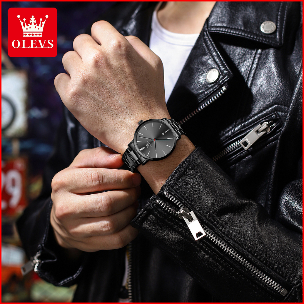 Olevs Jam Tangan Pria Anti Air Original Terbaru Cowok Kalender Stainless Steel Analog Men Watch Model Ty701