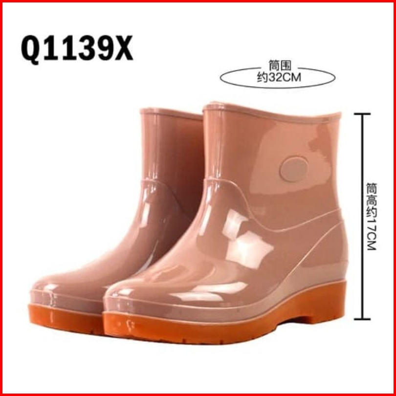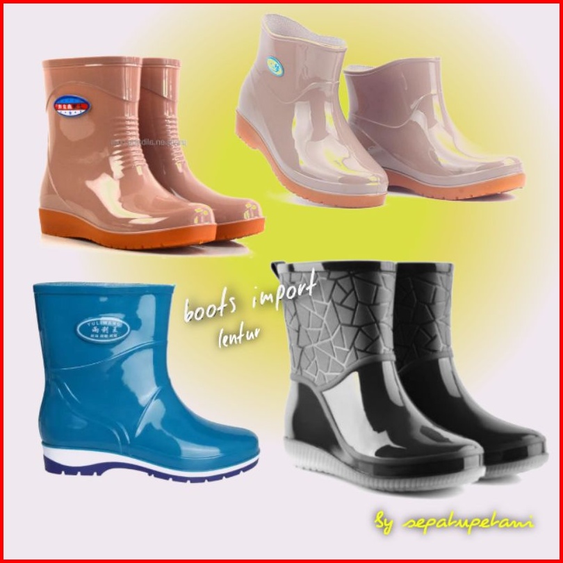 Sepatu Boot Boots But Wanita Import Karet Low Heels Lentur Anti Air Banjir Keong Tinggi 21 Cm Kebun Taman Pasar Lembut P