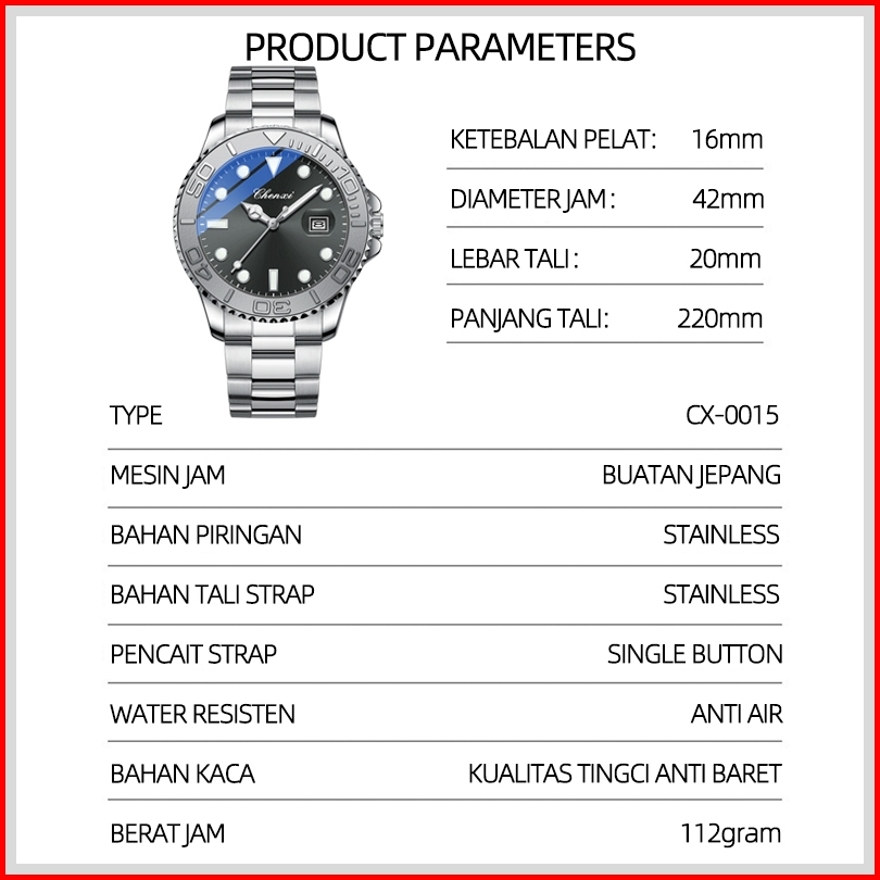 Jam Tangan Otomatis Chenxi 0015 Pria Dewasa Cowok Terbaru 2024 Anti Air Kasual Olahraga Digital Kado