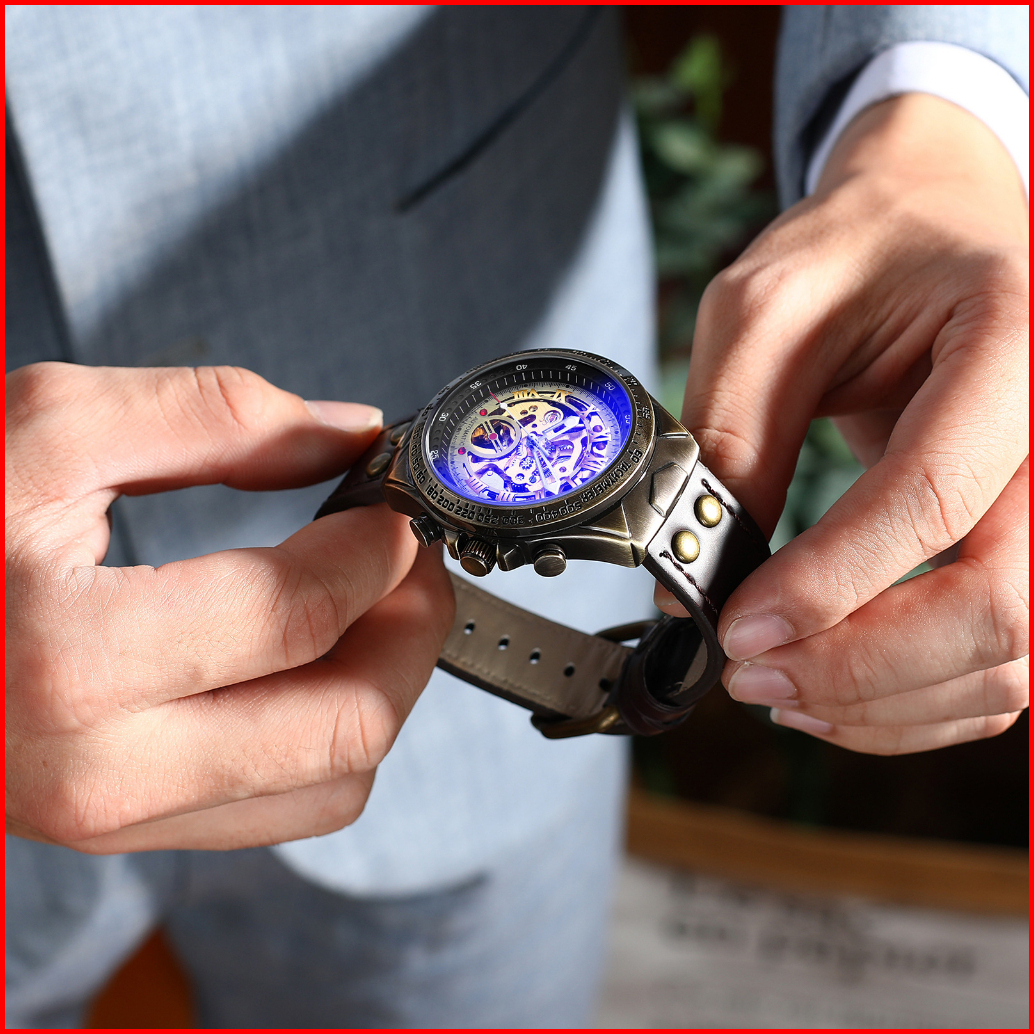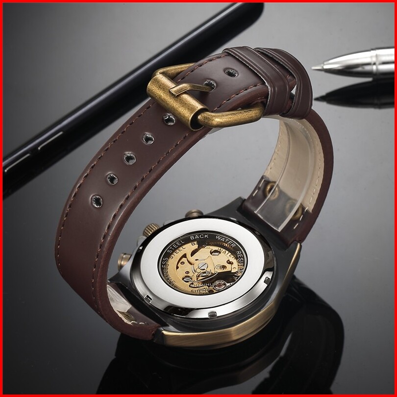 Best Price C-12 Jam Tangan Pria Automatic Mechanical Classic Original Anti Air Free Box- Jam Tangan Cowo Tali Kulit Otom