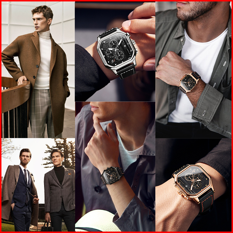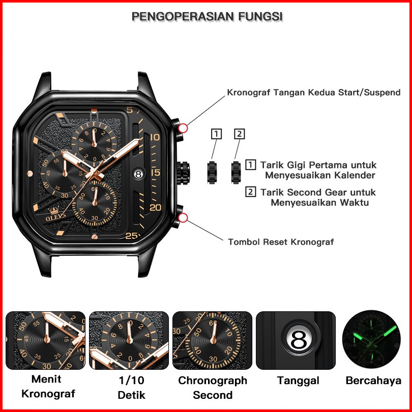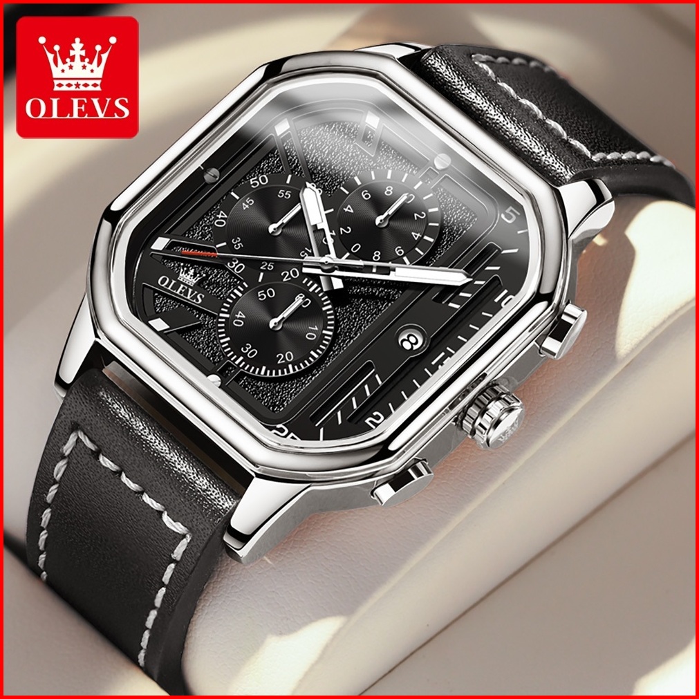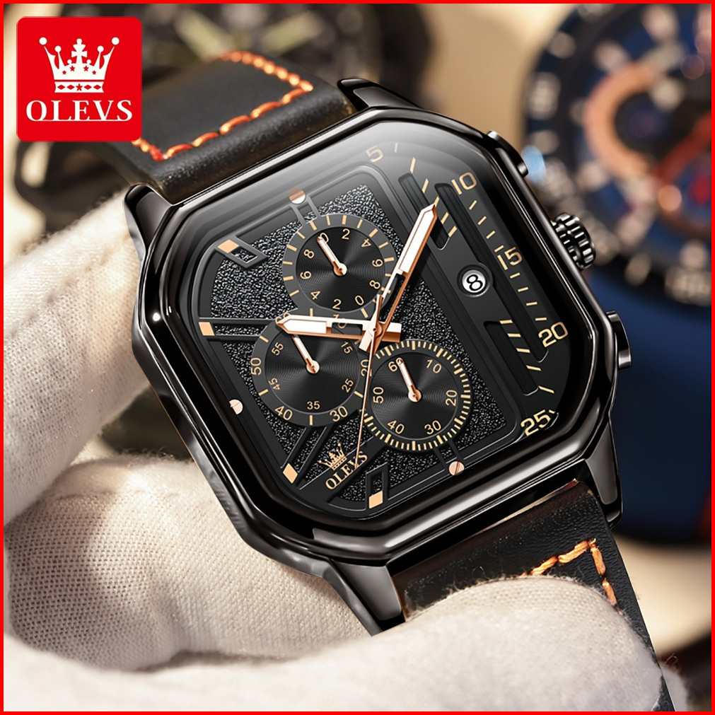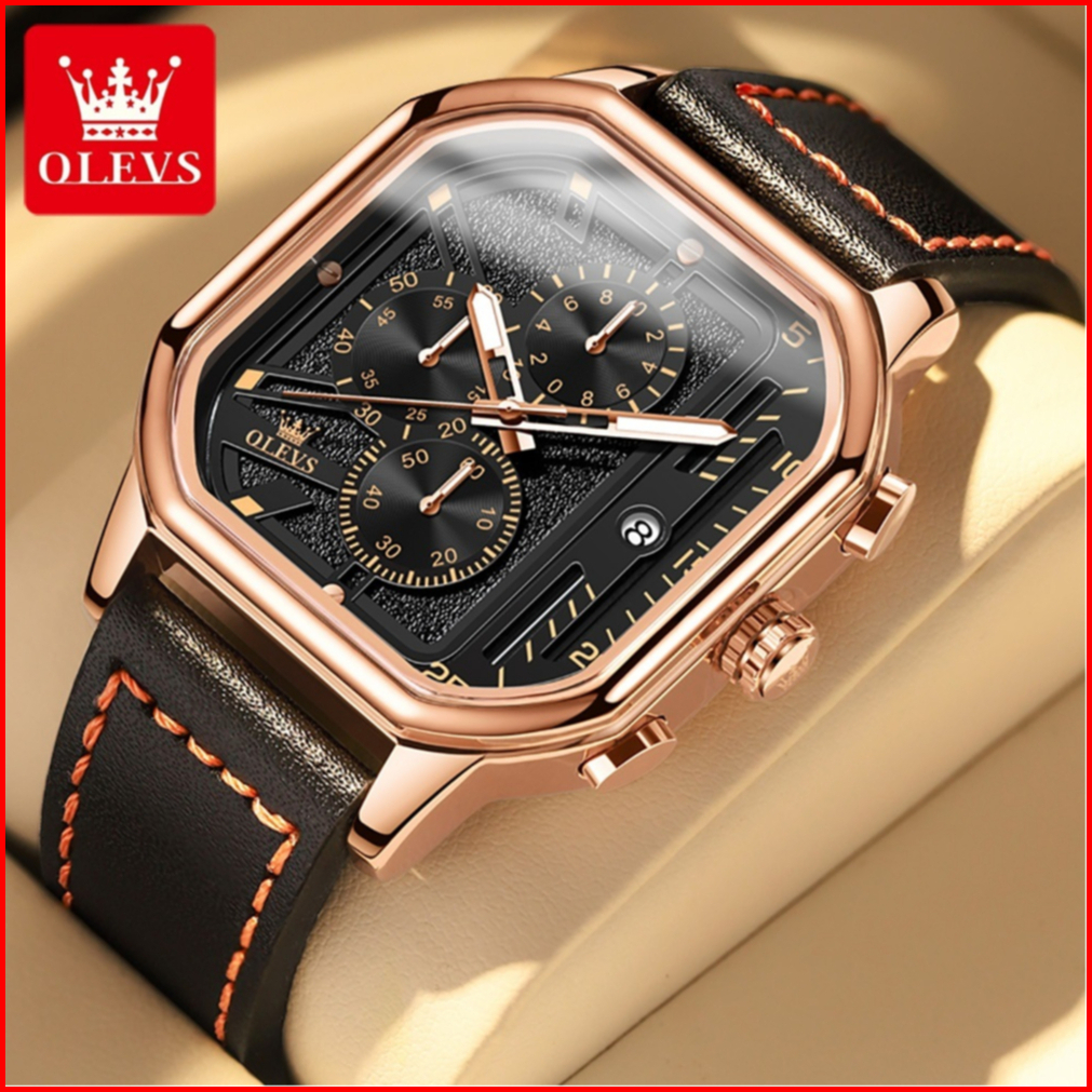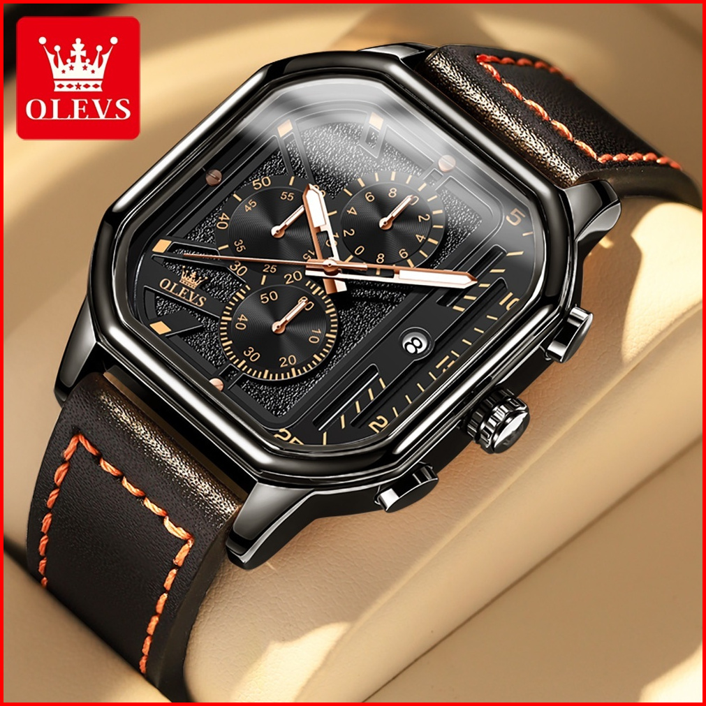 Olevs Jam Tangan Pria Original Anti Air Mewah Tali Kulit Terbaru 2024 Chronograph Multifungsi Watch