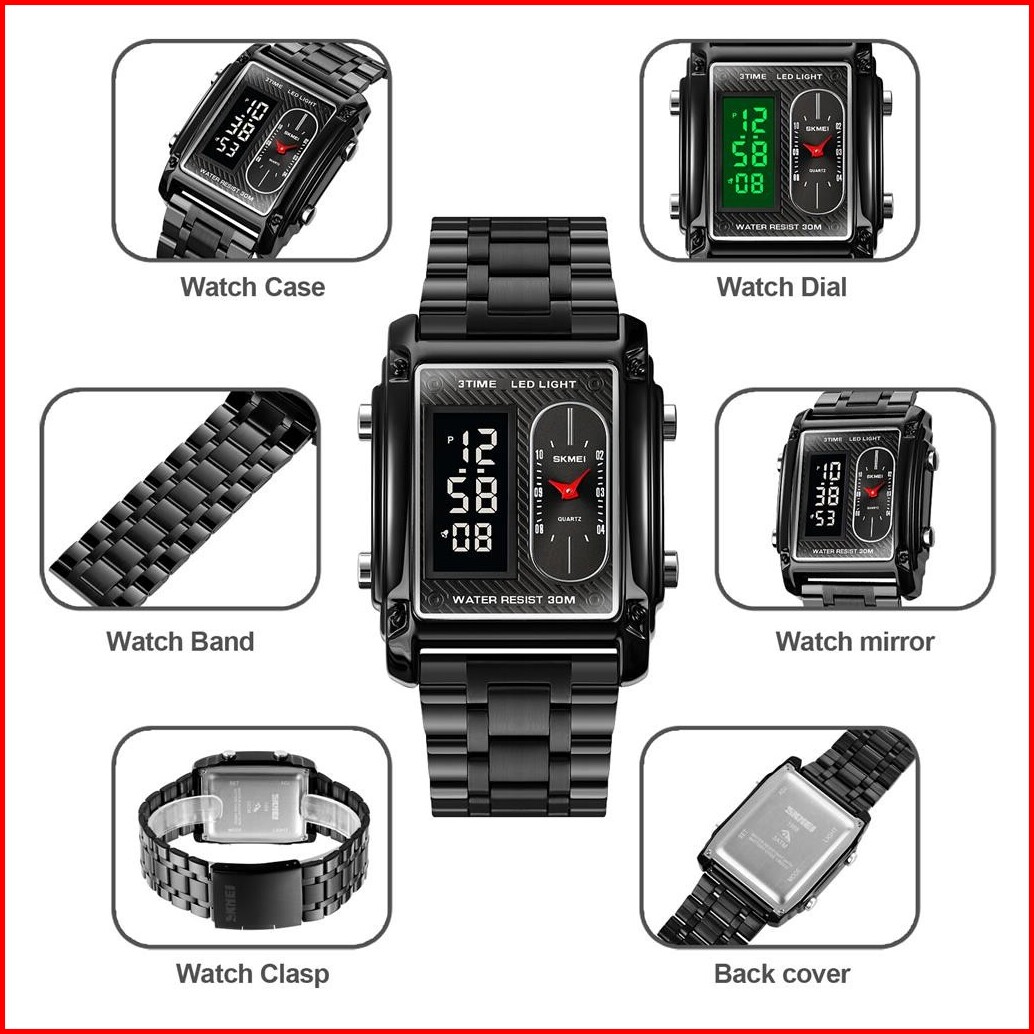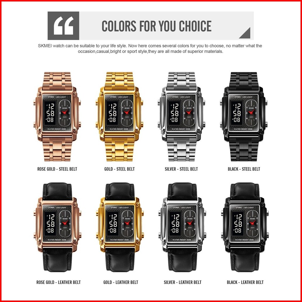 Jam Tangan Digital Skmei 1868 Kulit Dan Stainless Steel Water Resist